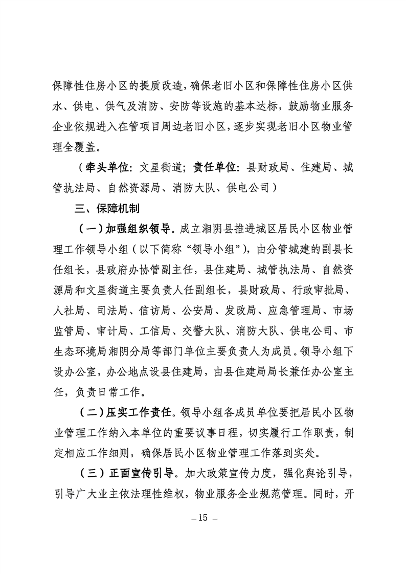 湘阴县人民政府办公室印发《关于推进城区居民小区物业管理工作的实施意见(试行)》的通知
