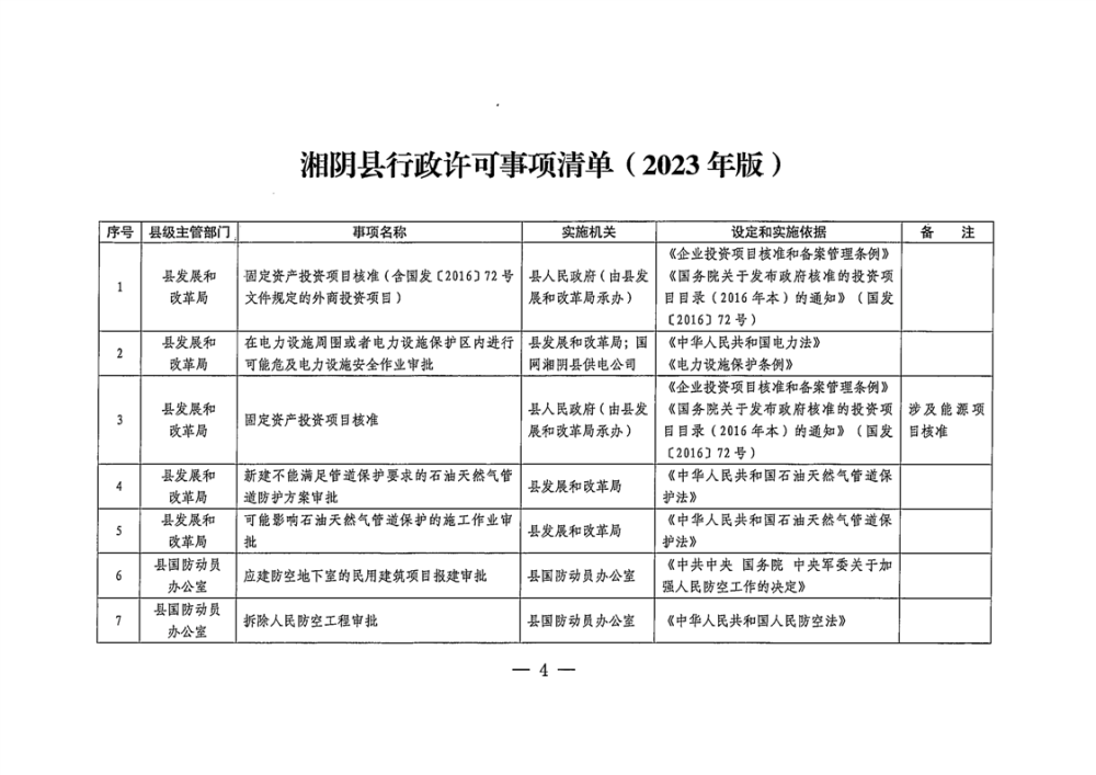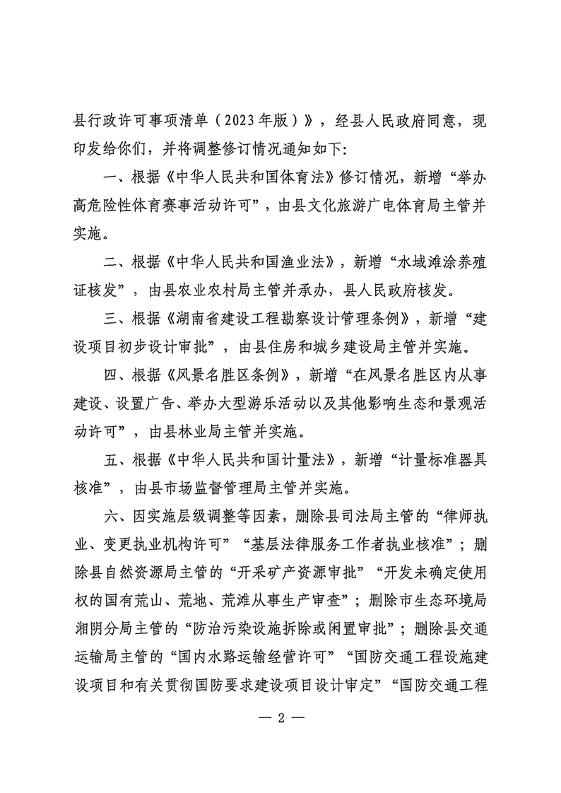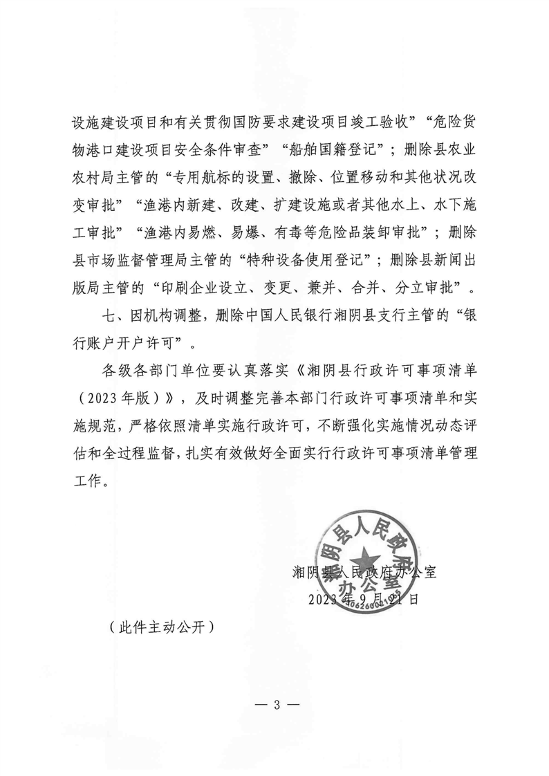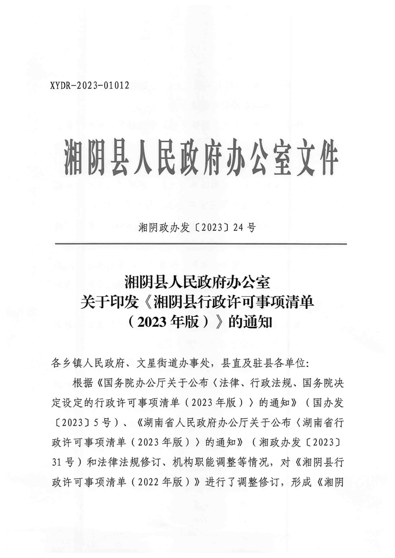 关于印发《湘阴县行政许可事项清单(2023年版)》的通知