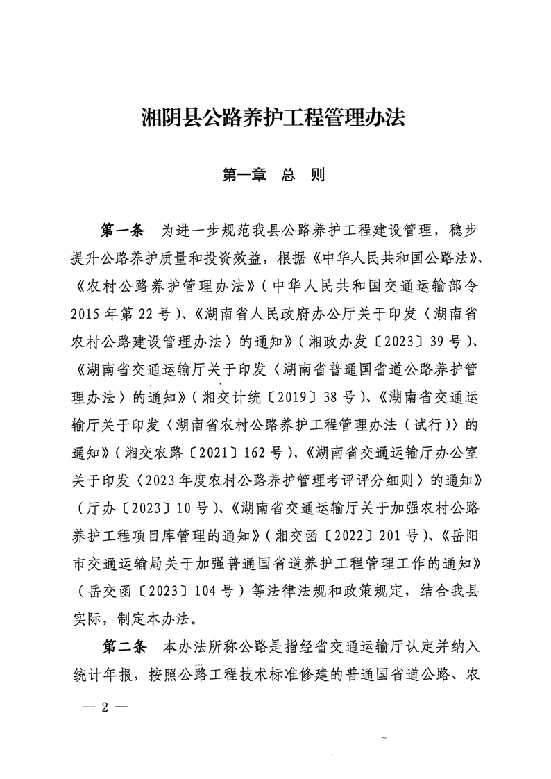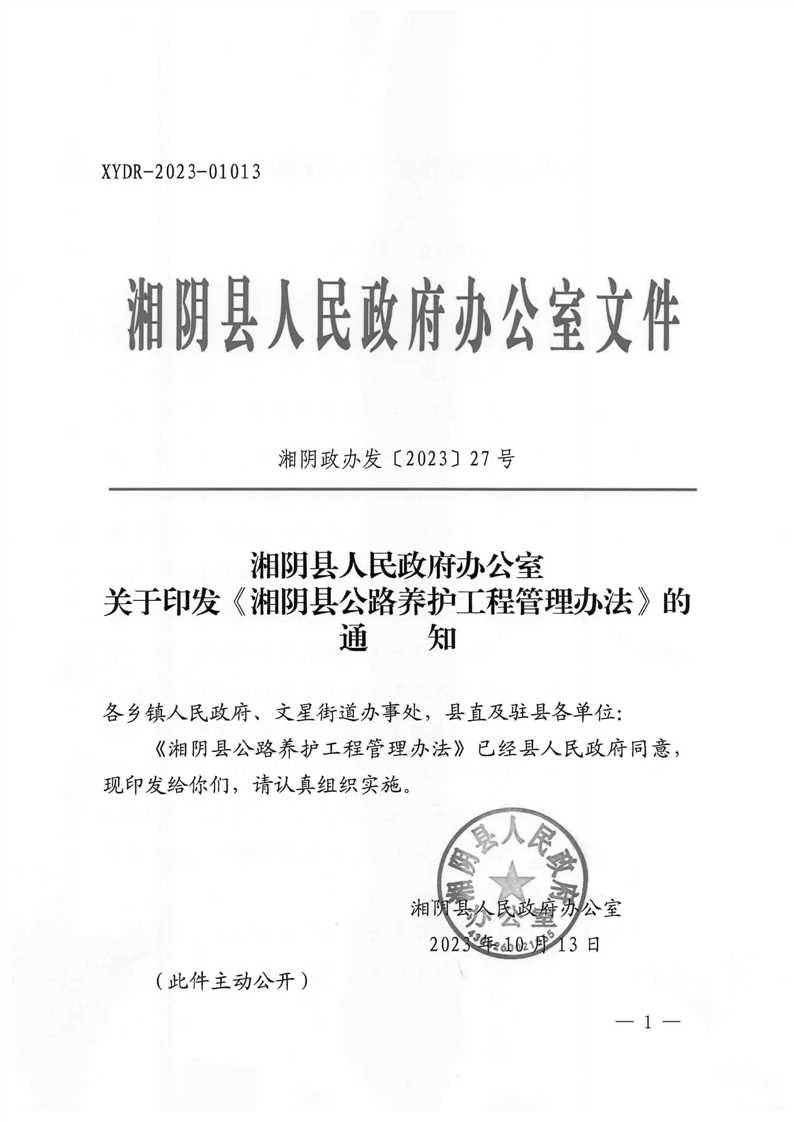 关于印发《湘阴县公路养护工程管理办法》的通知