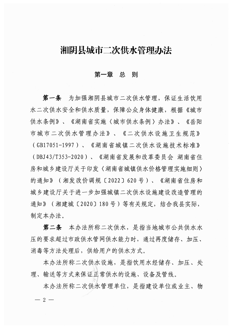 关于《湘阴县城市二次供水管理办法》的政策解读