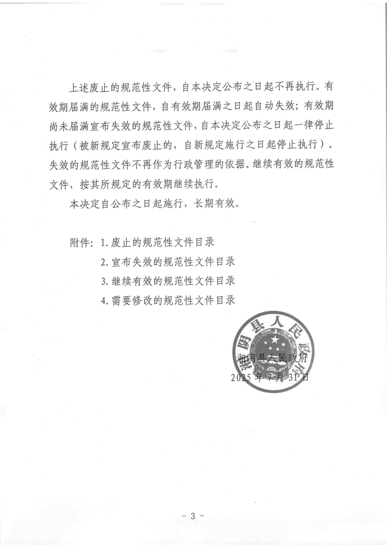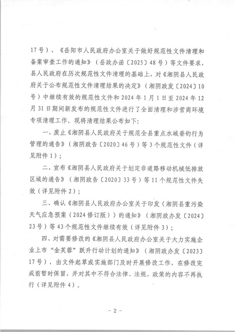 湘阴县人民政府关于公布规范性文件清理结果的决定
