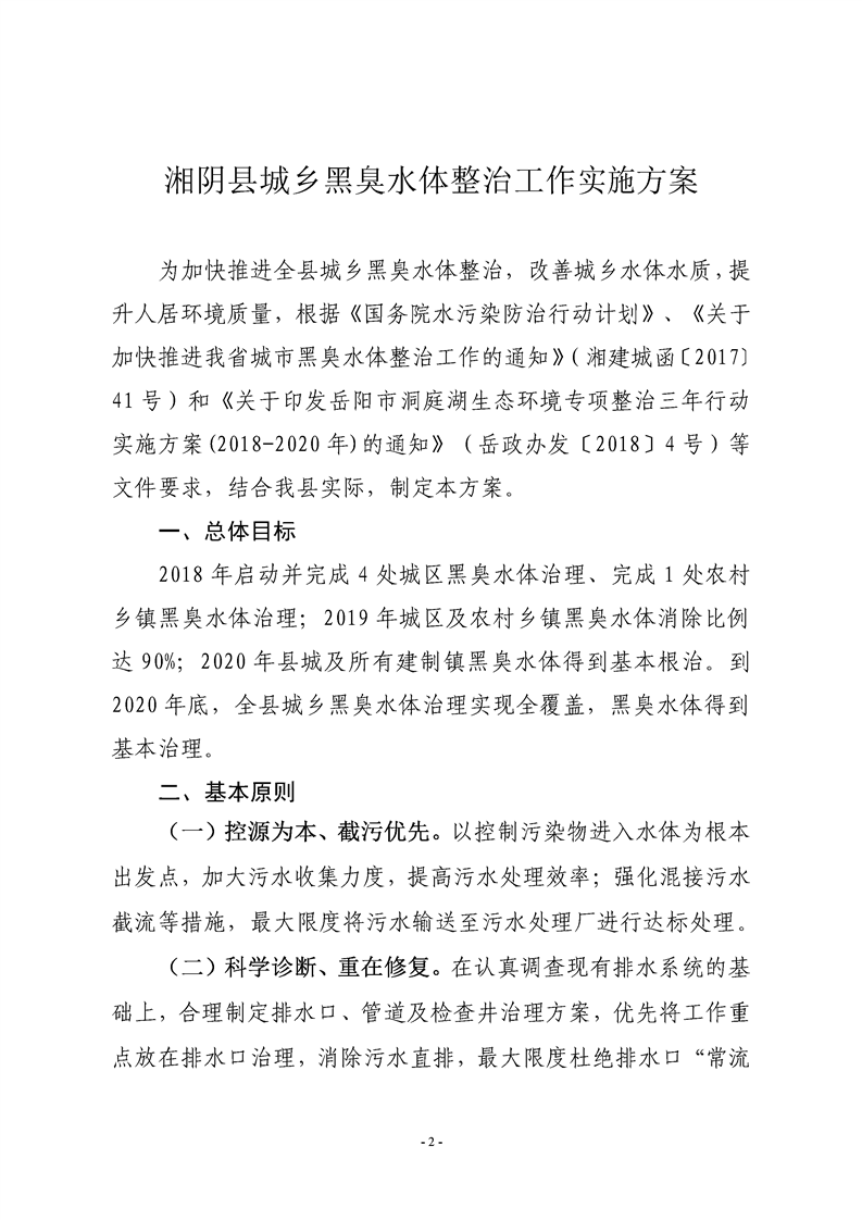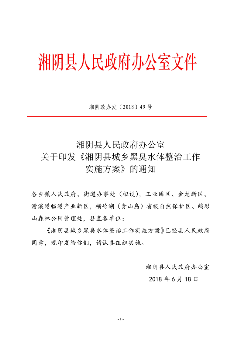 关于印发《湘阴县城乡黑臭水体整治工作实施方案》的通知