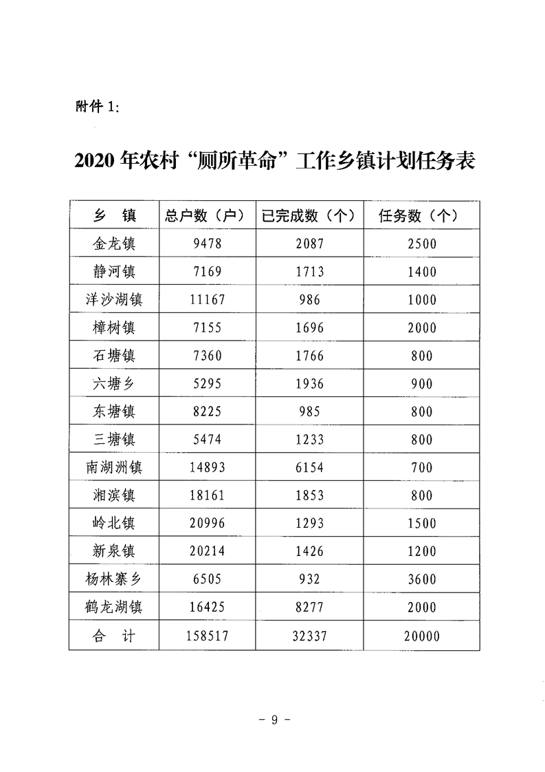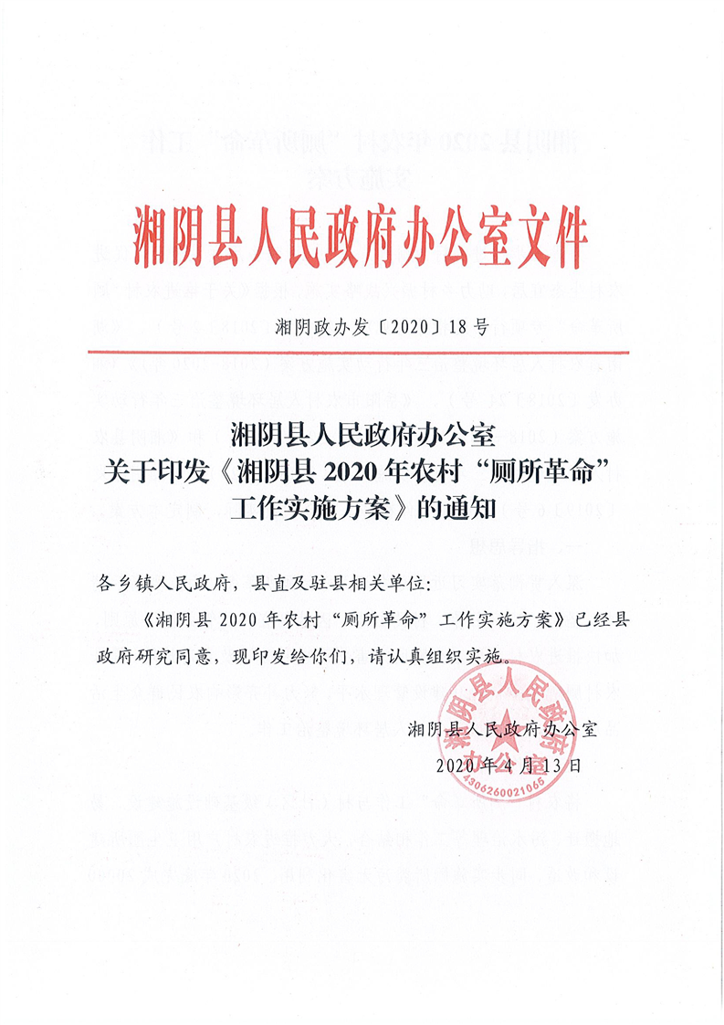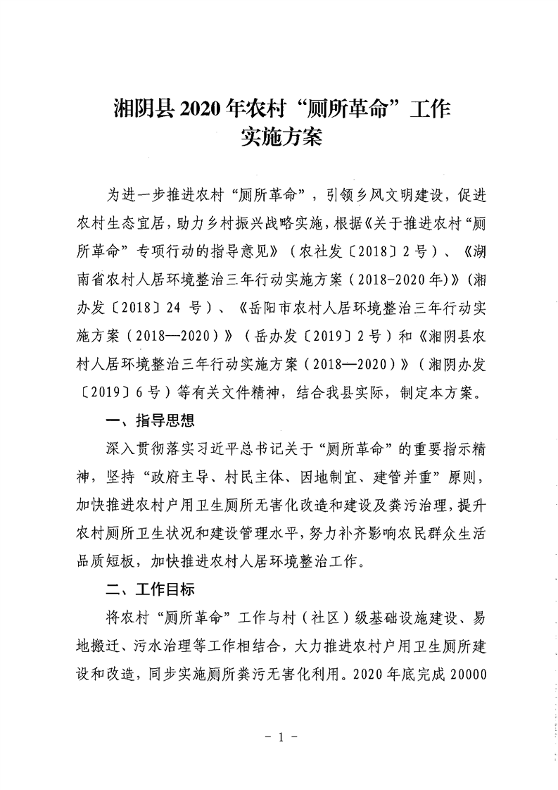 关于印发《湘阴县2020年农村“厕所革命”工作实施方案》的通知