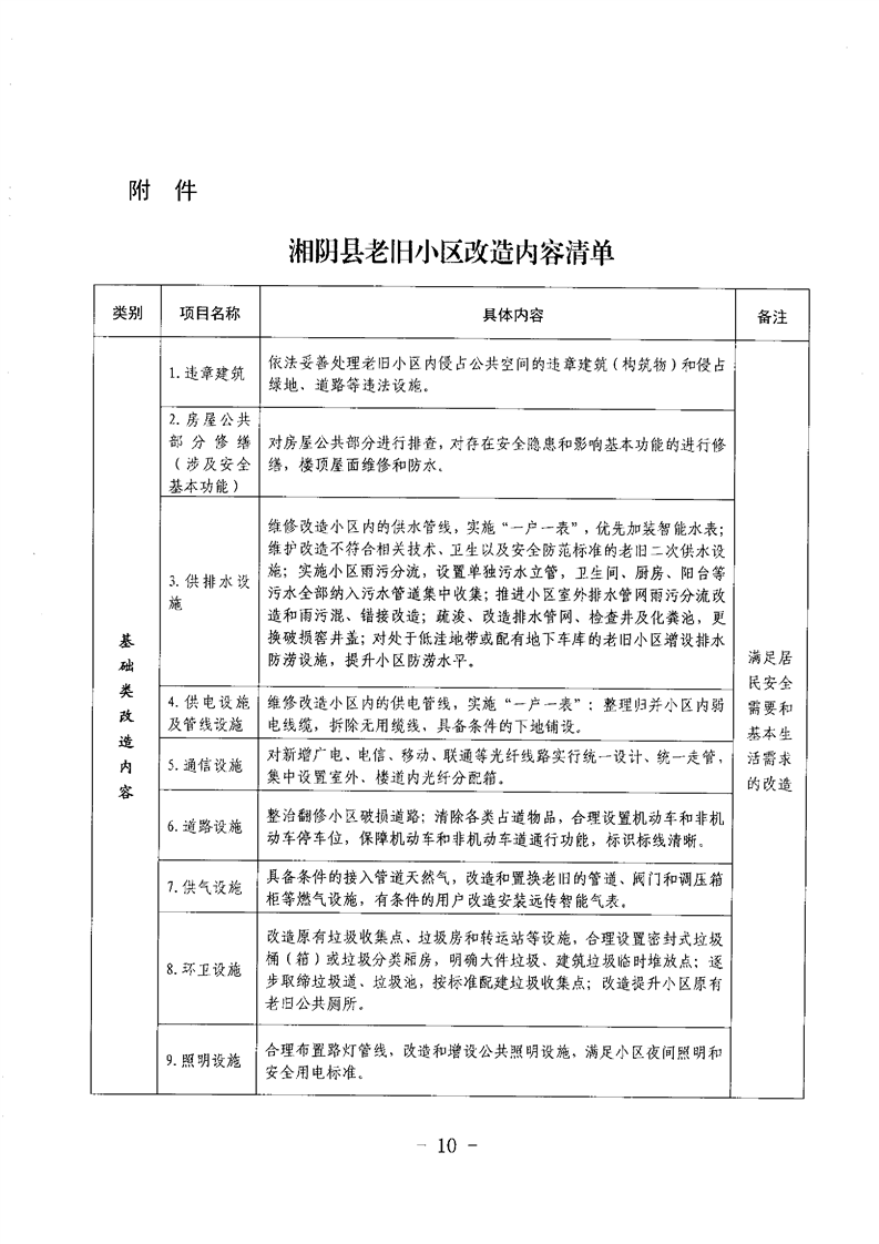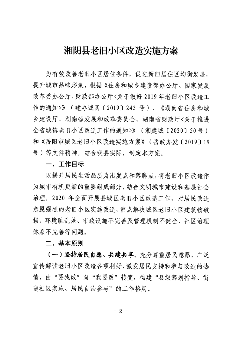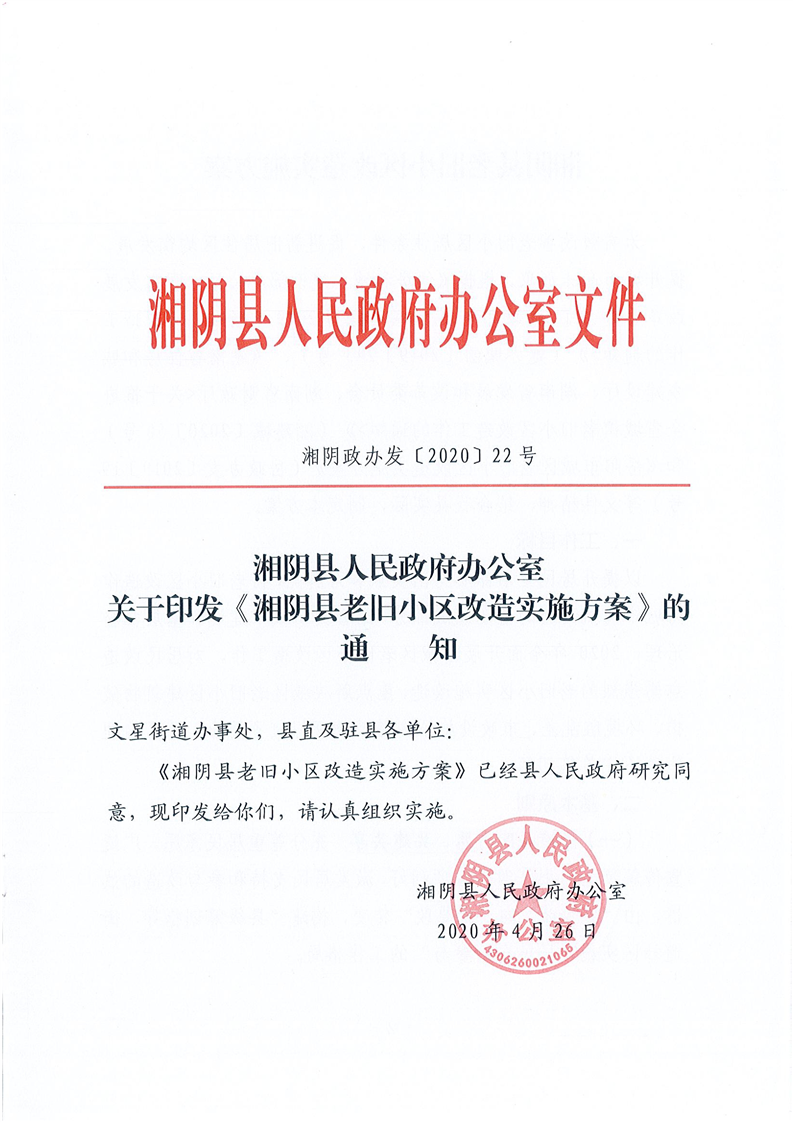 关于印发《湘阴县老旧小区改造实施方案》的通知