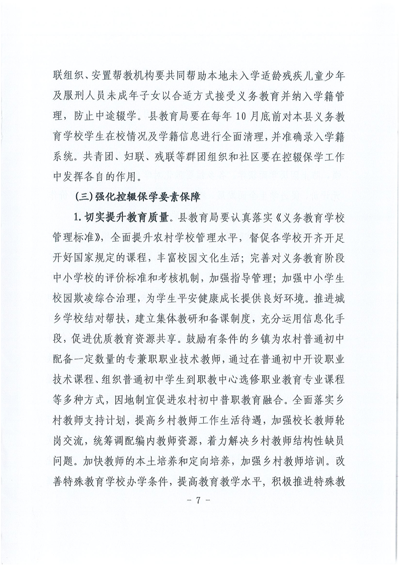 印发《关于进一步加强控辍保学提高义务教育巩固水平的实施意见》的通知