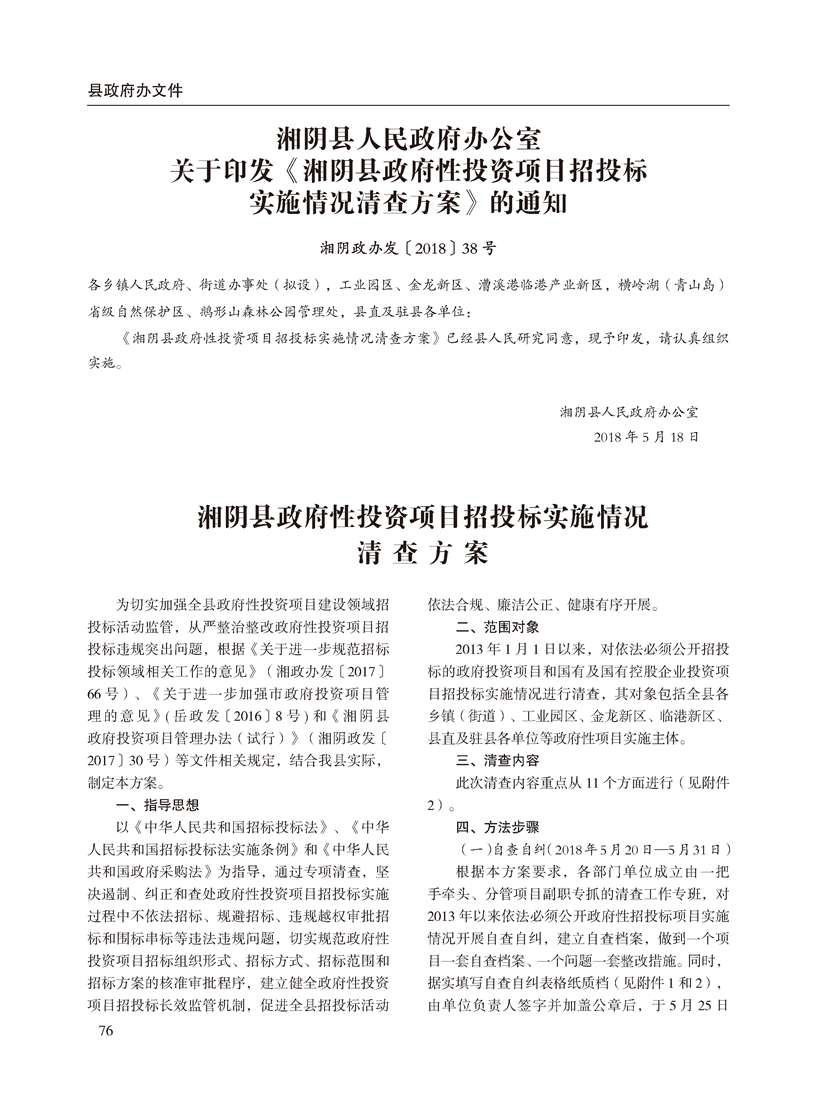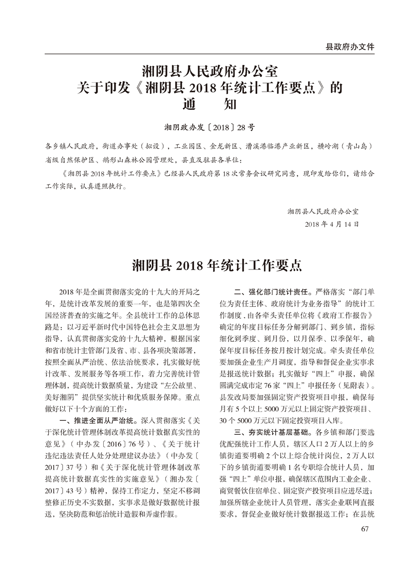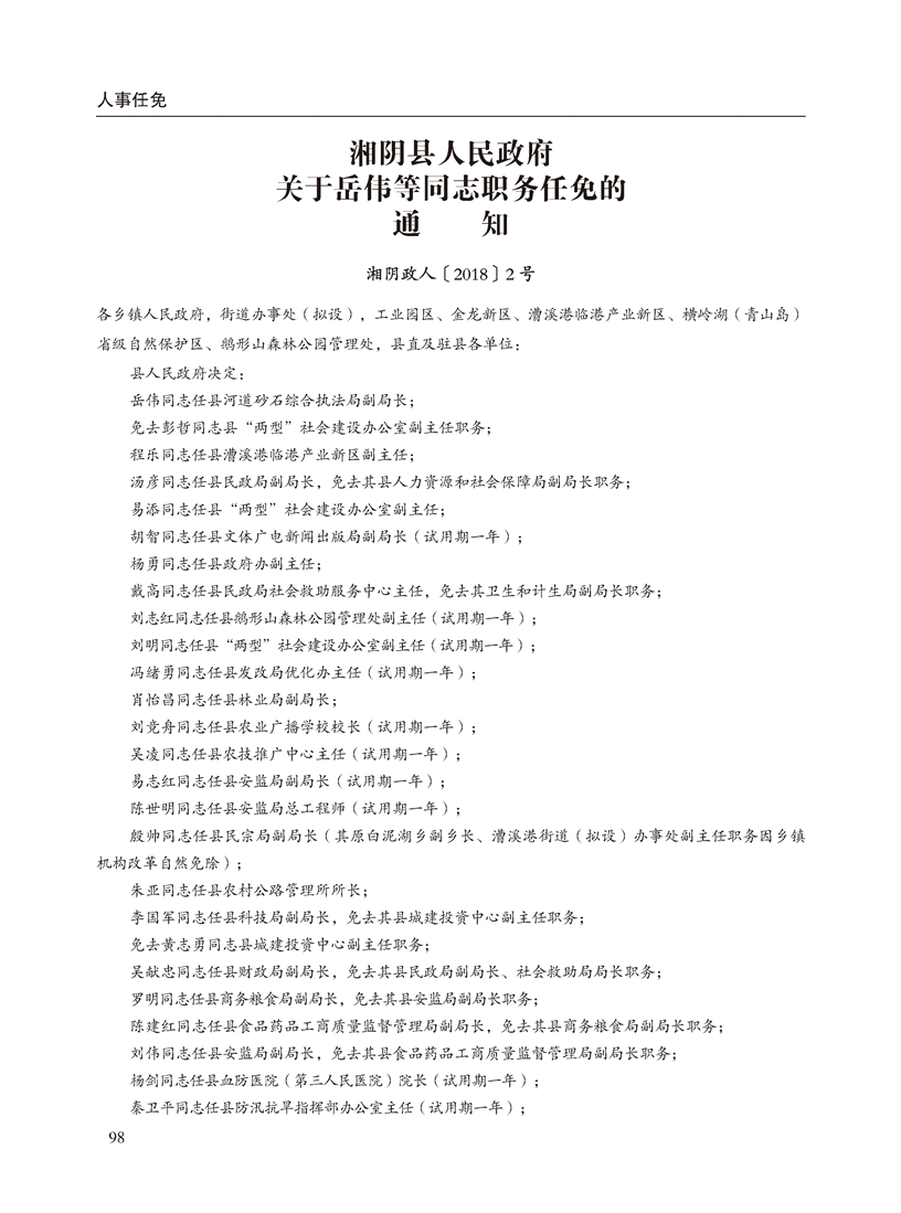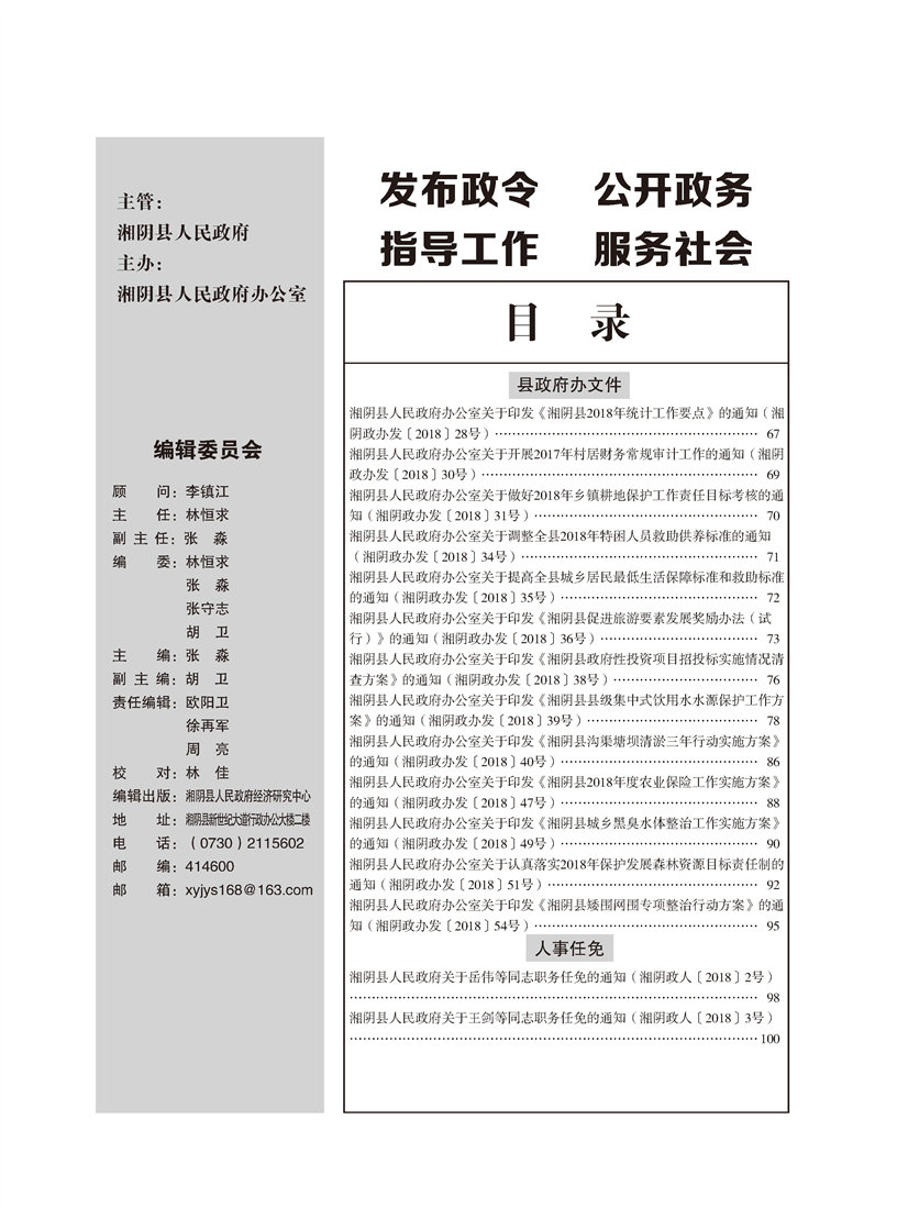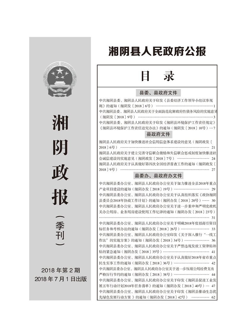 湘阴县人民政府公报2018年第二期 出版日期:2018年07月02日出版