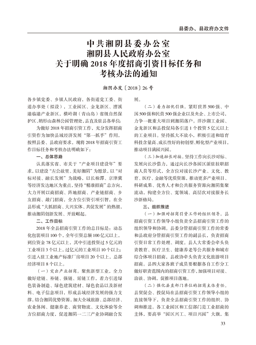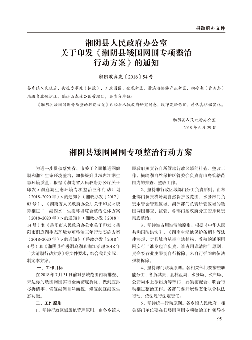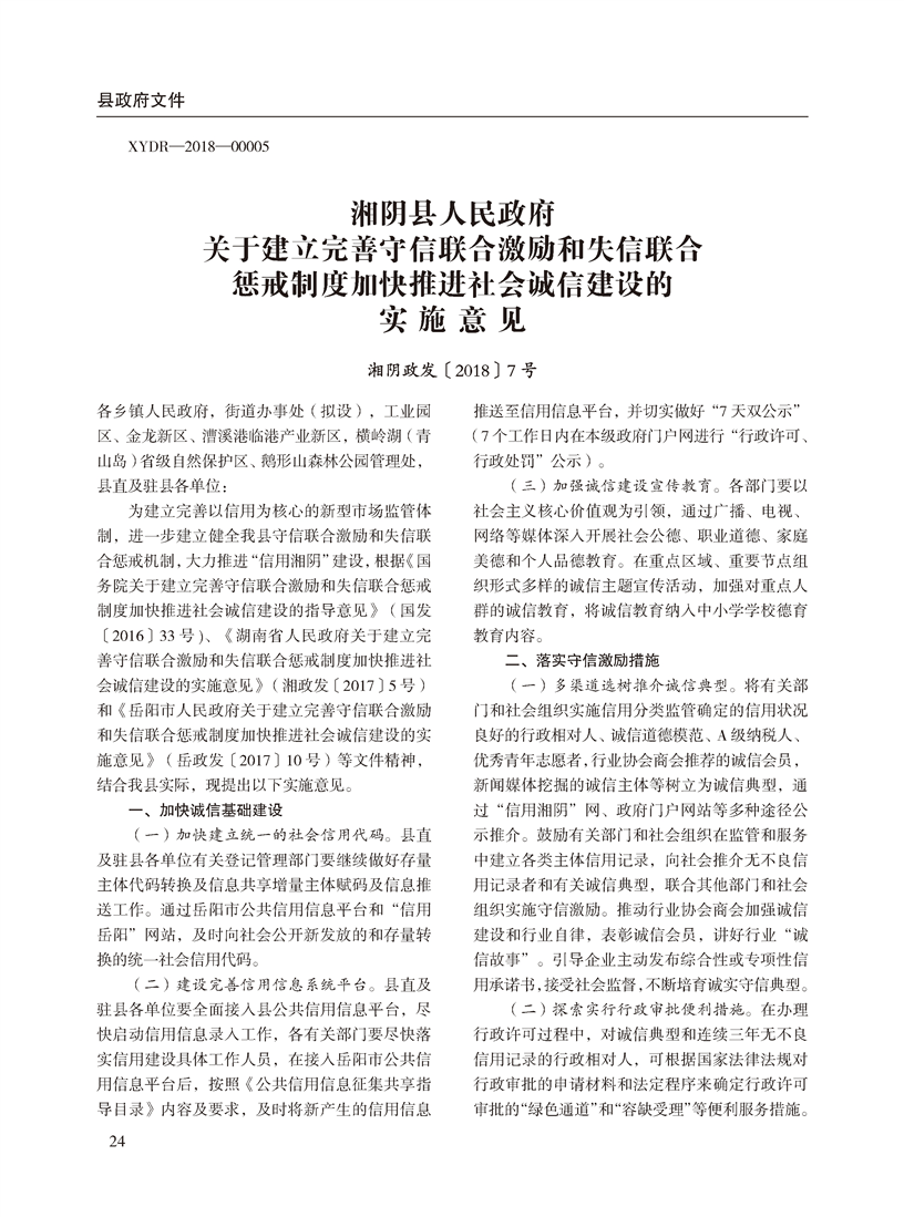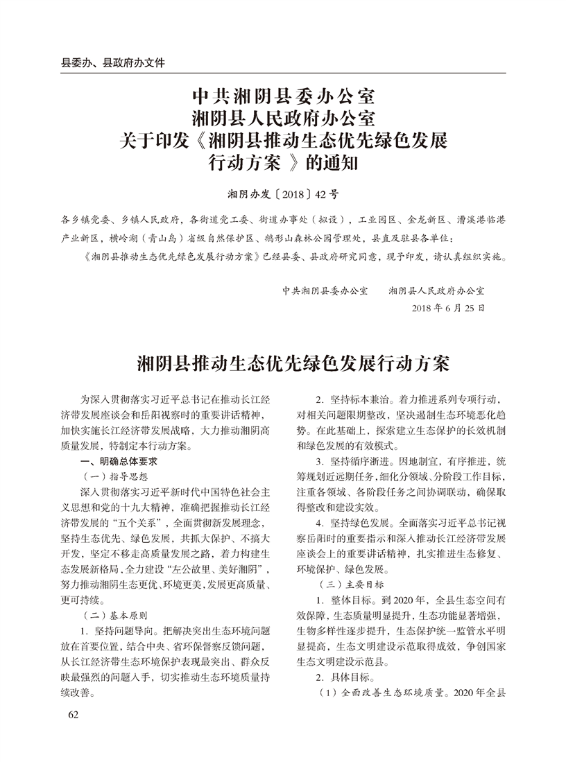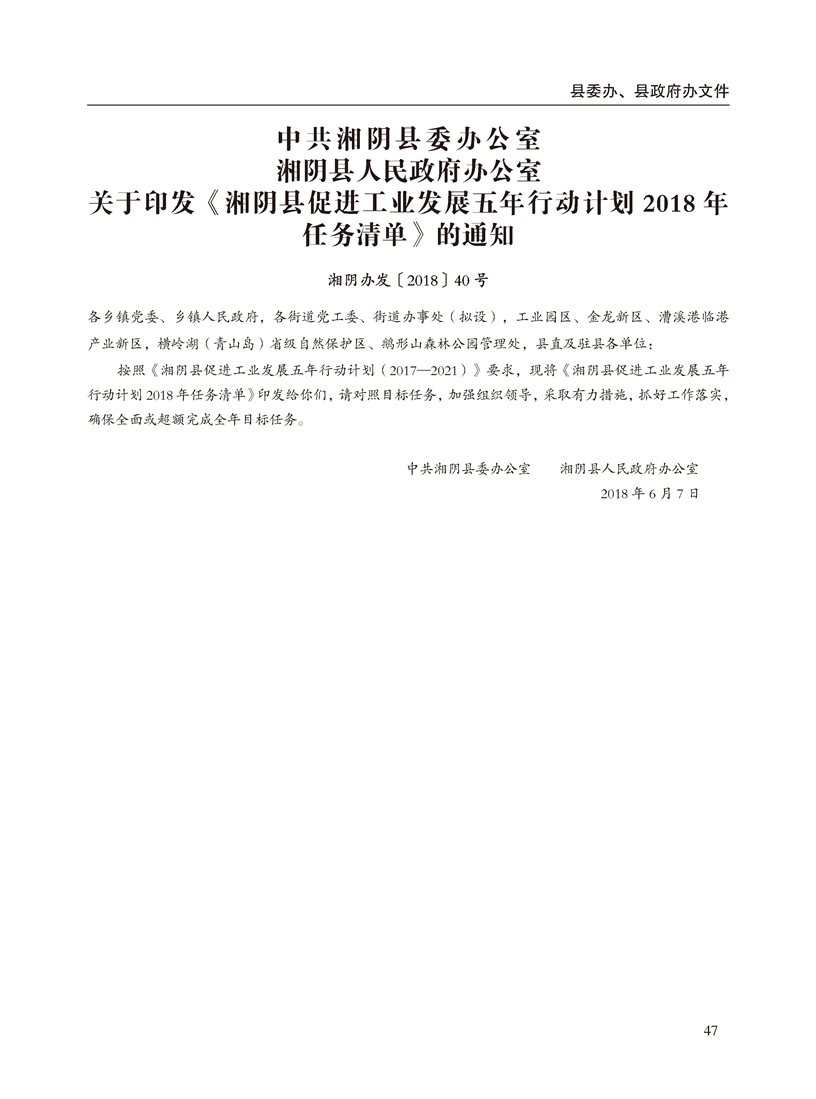湘阴县人民政府公报2018年第二期 出版日期:2018年07月02日出版