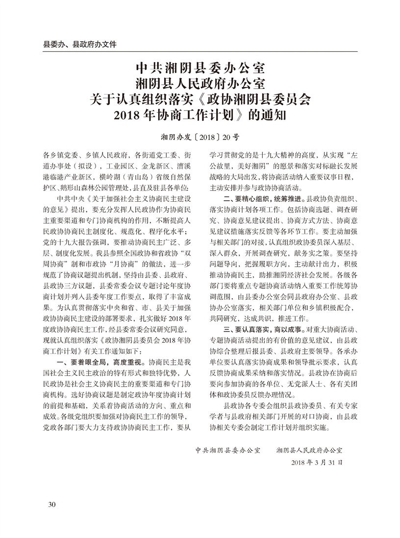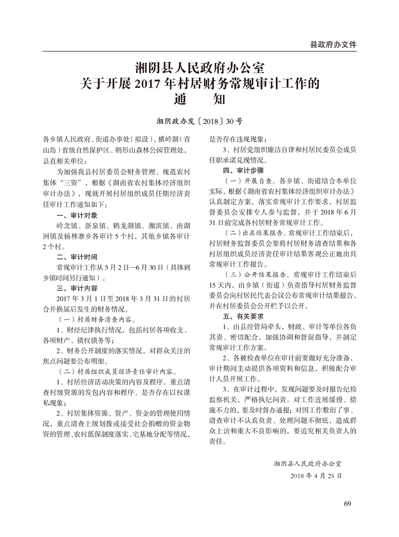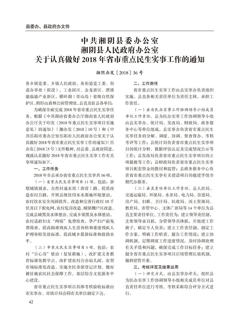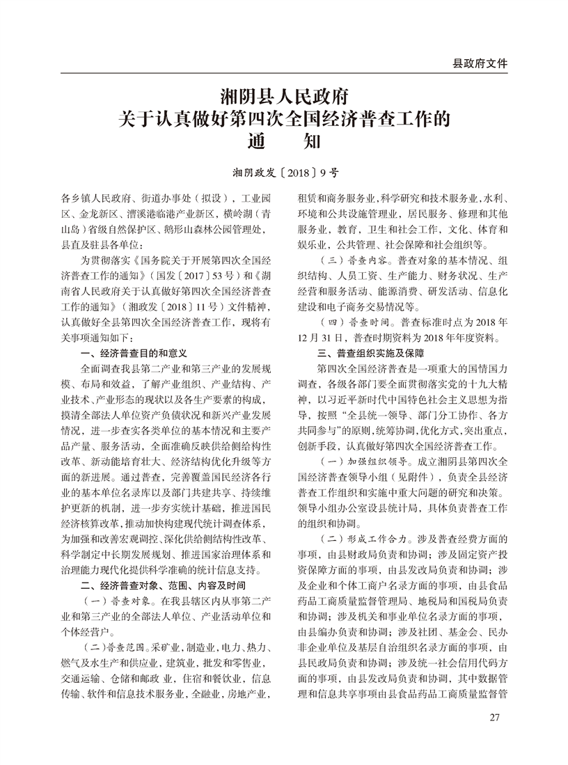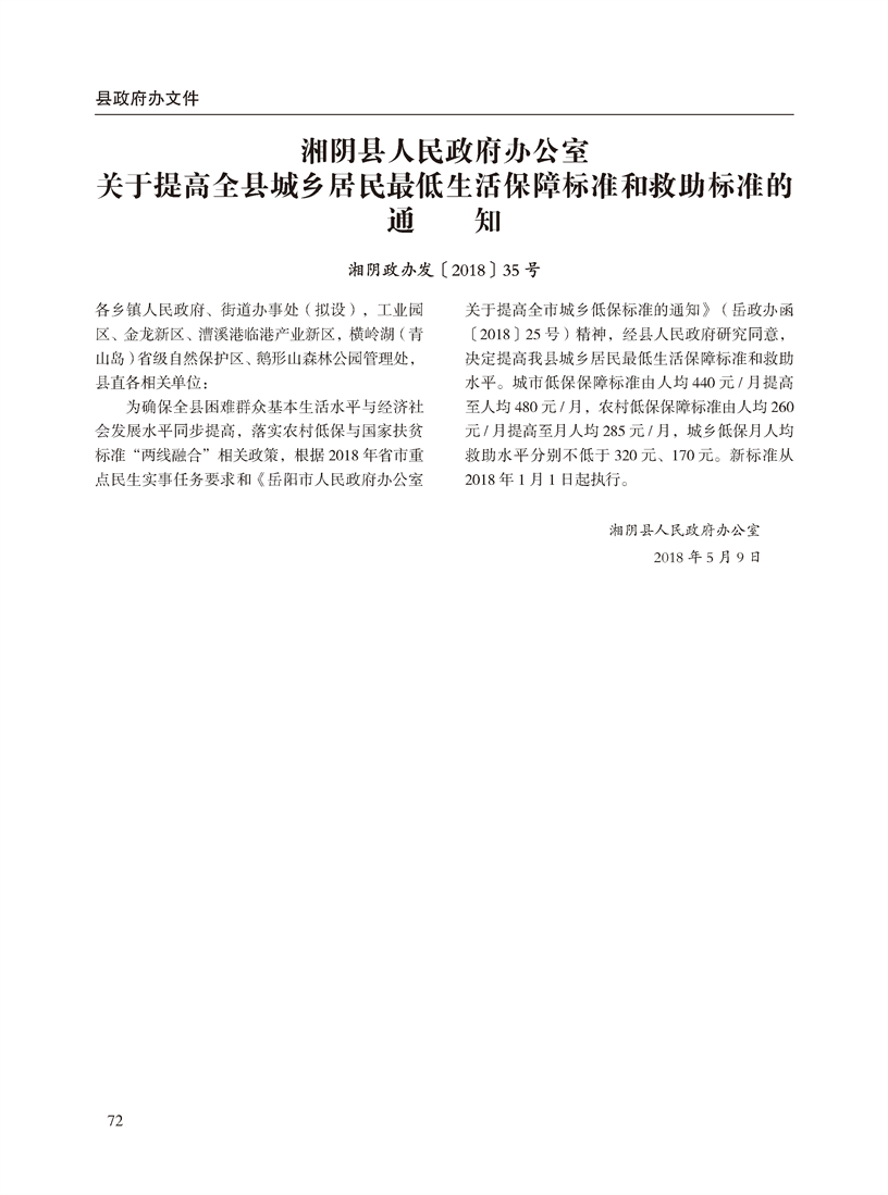 湘阴县人民政府公报2018年第二期 出版日期:2018年07月02日出版