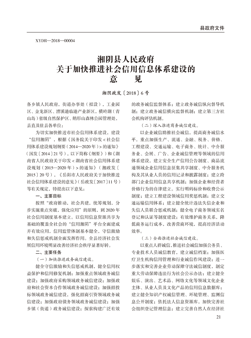 《湘阴县人民政府公报》是由湘阴县人民政府主办并公开发行的政府出版物,主要刊载湘阴县政府规章和行政规范性文件,是政府信息公开的重要载体。根据《中华人民共和国立法法》等有关规定,在《湘阴县人民政府公报》上刊登的政府规章和行政规范性文件文本为标准文本,与正式文件具有同等效力。