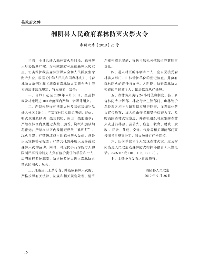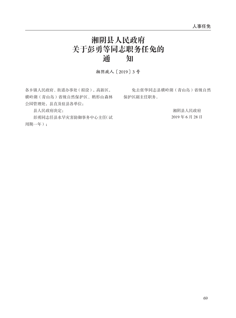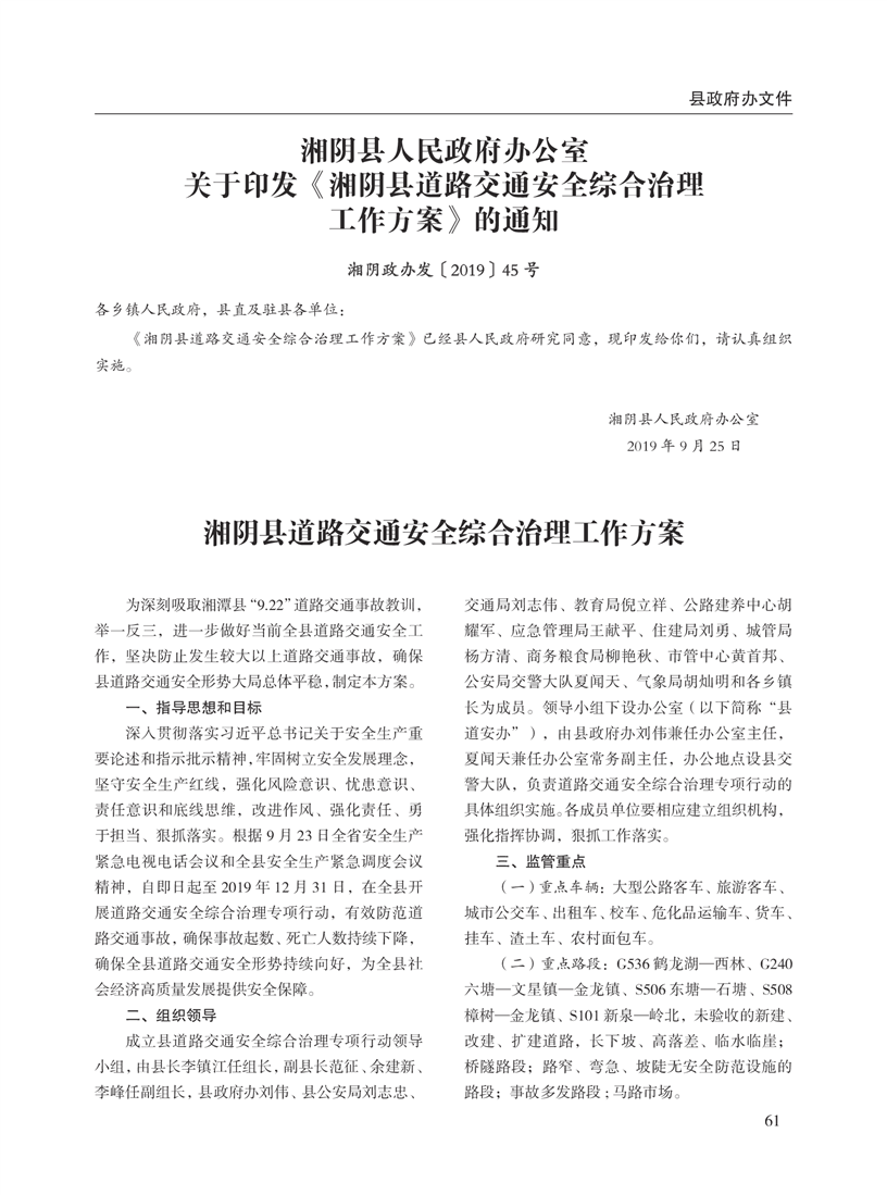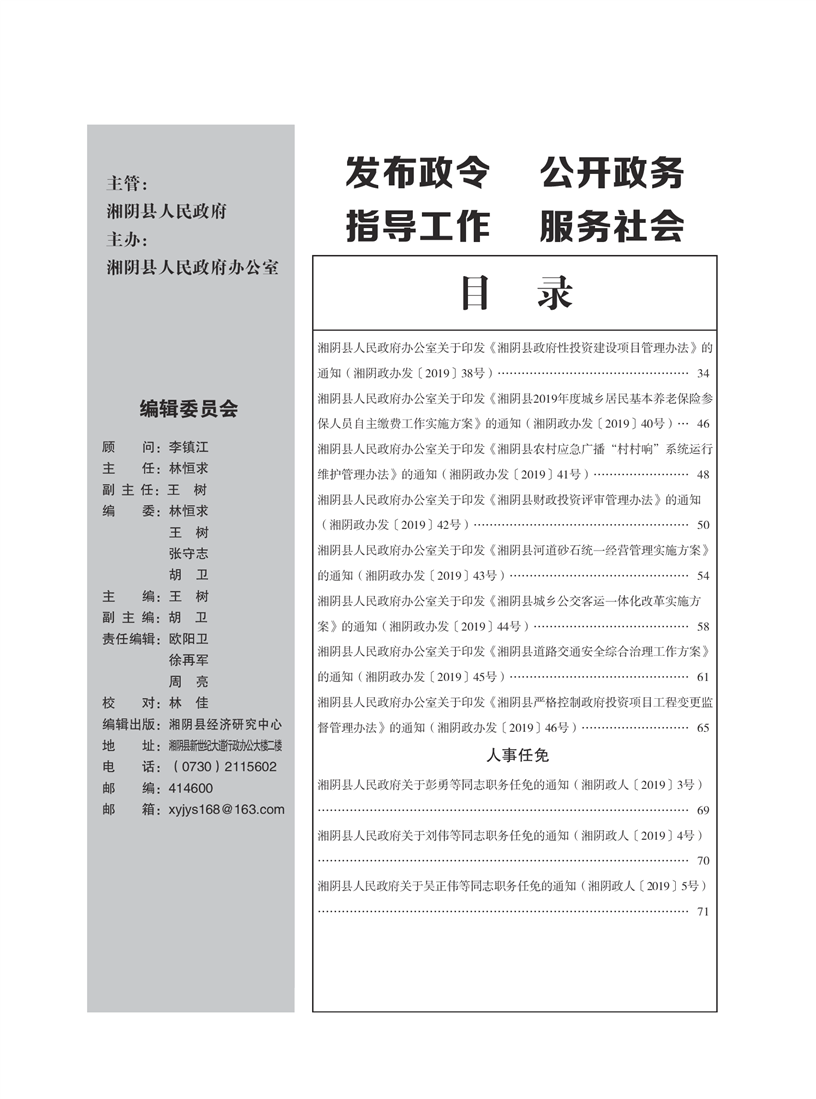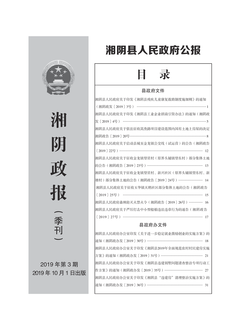 湘阴县人民政府公报2019年第三期 出版日期:2019年10月09日出版