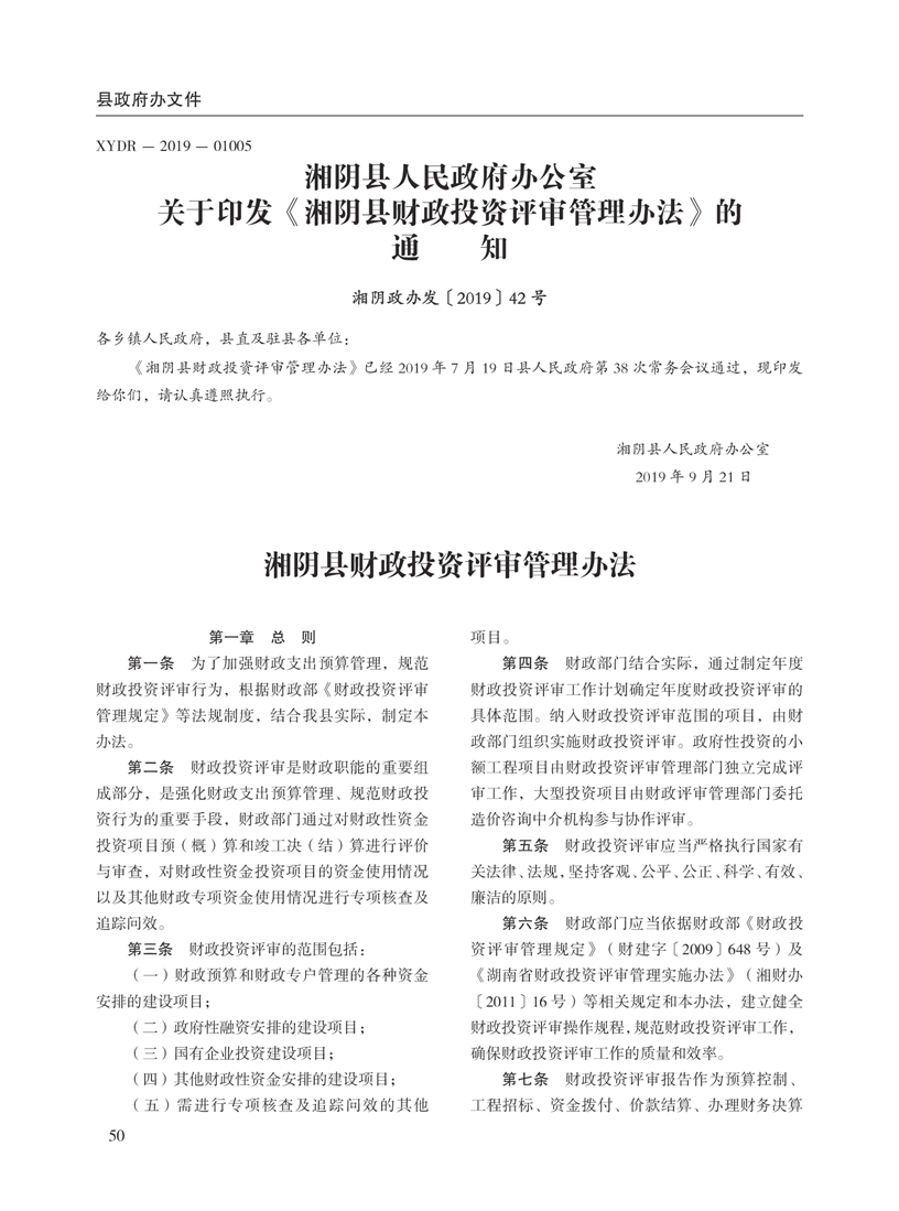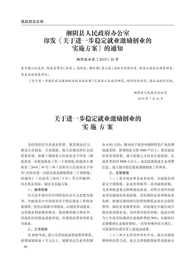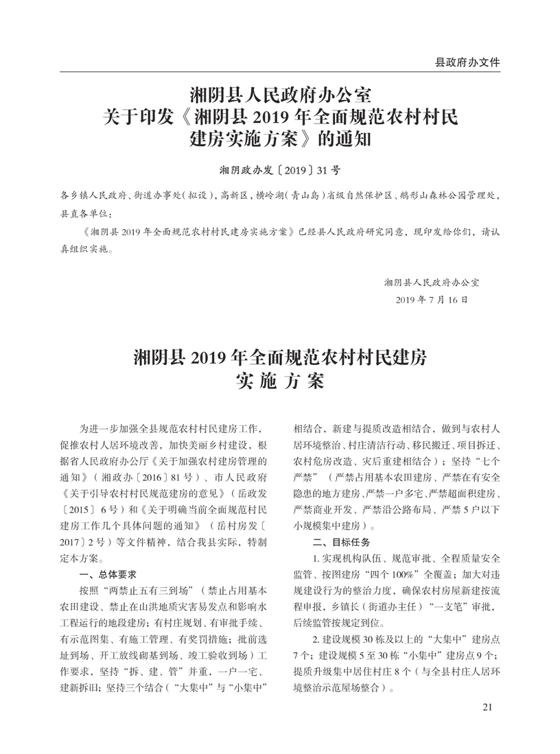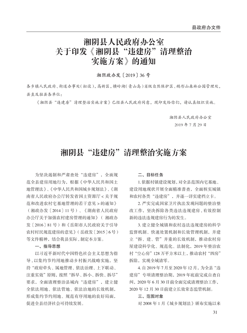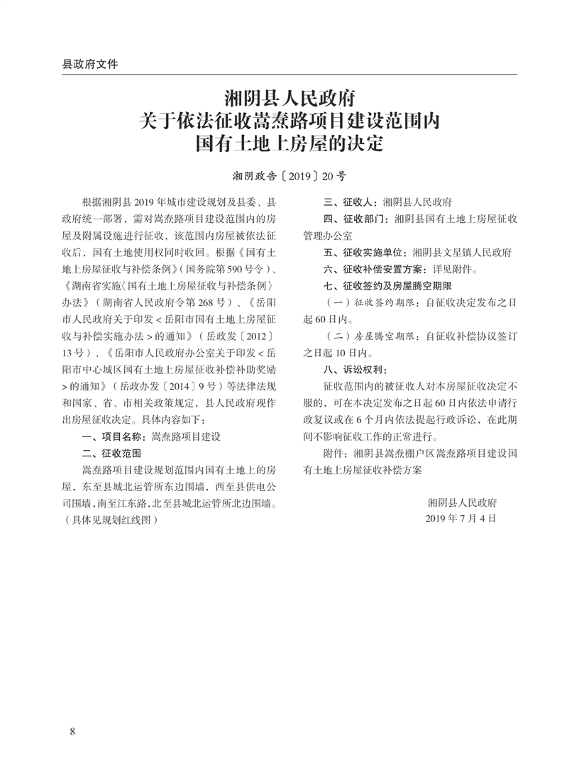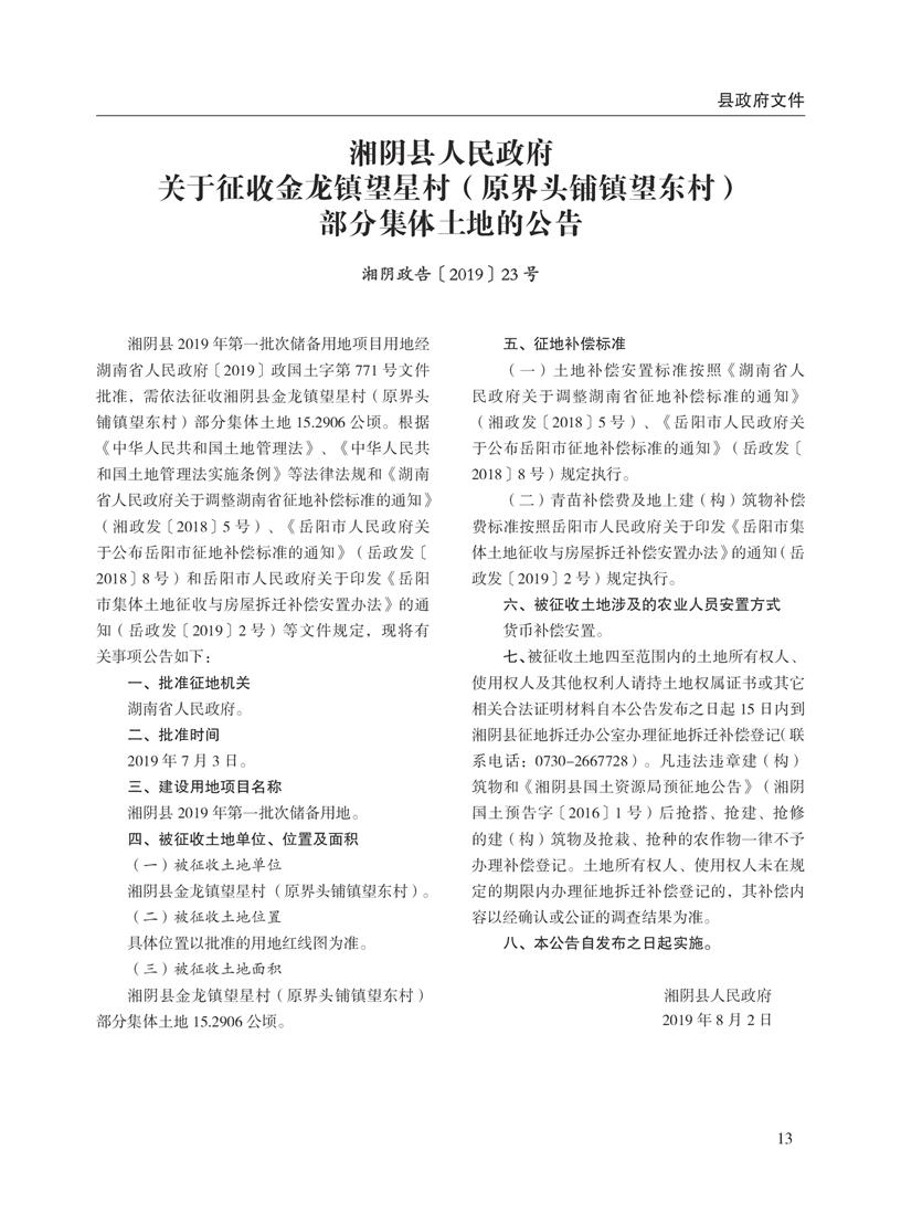 湘阴县人民政府公报2019年第三期 出版日期:2019年10月09日出版