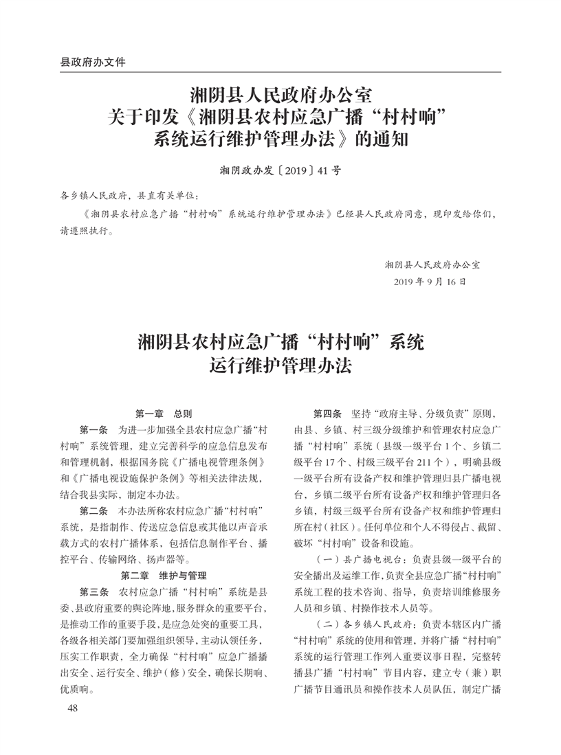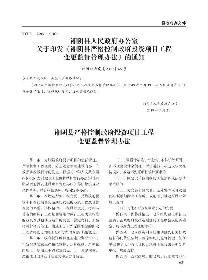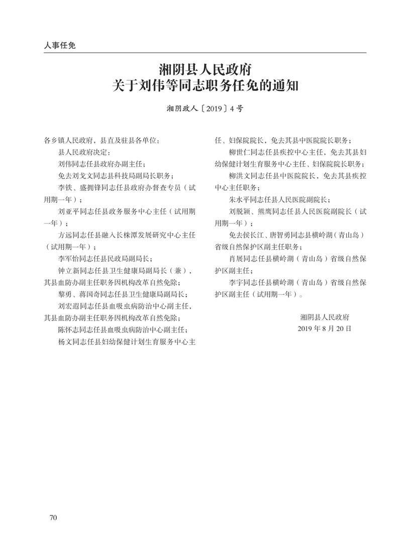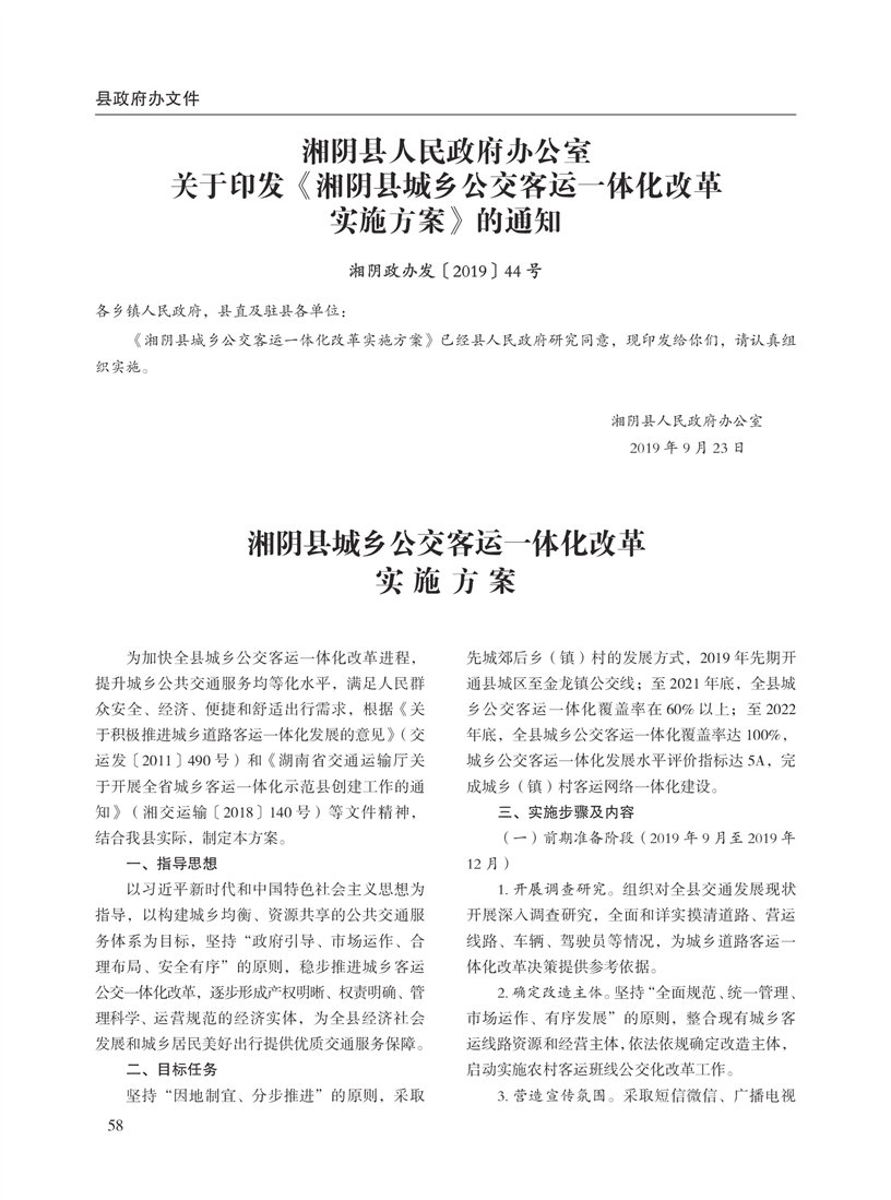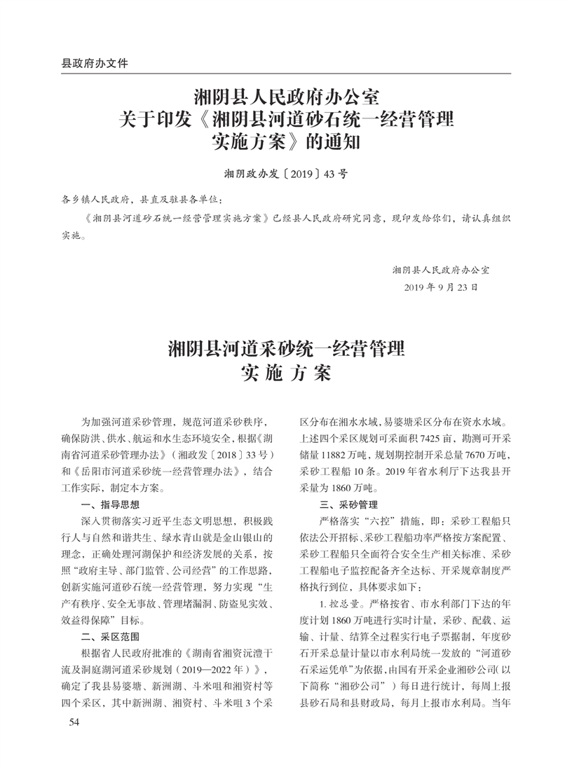 湘阴县人民政府公报2019年第三期 出版日期:2019年10月09日出版