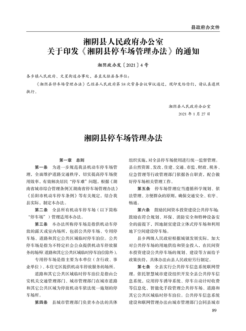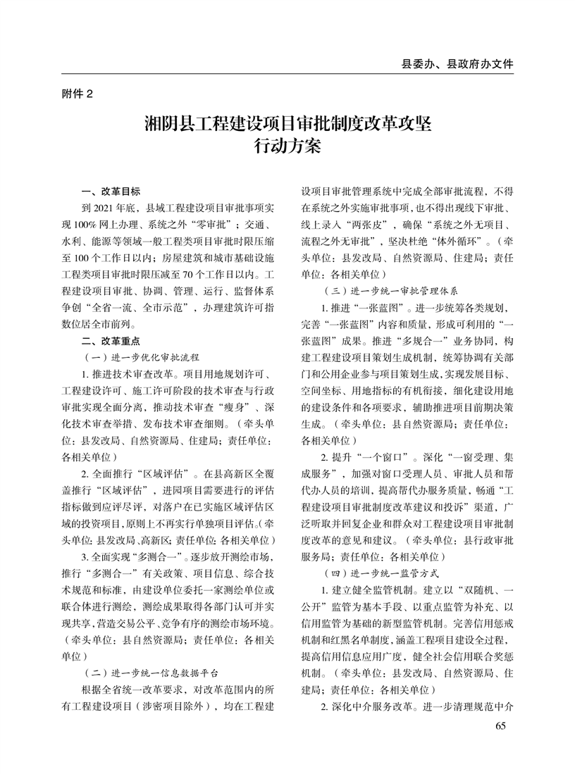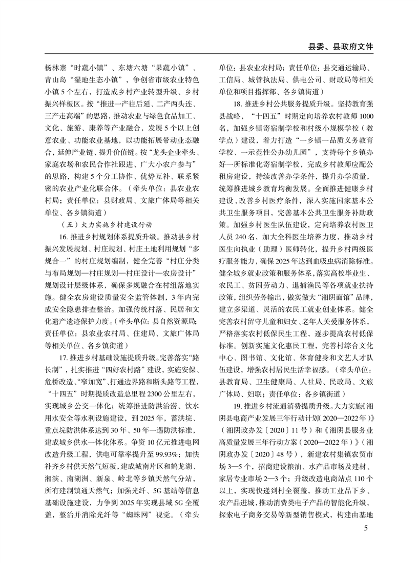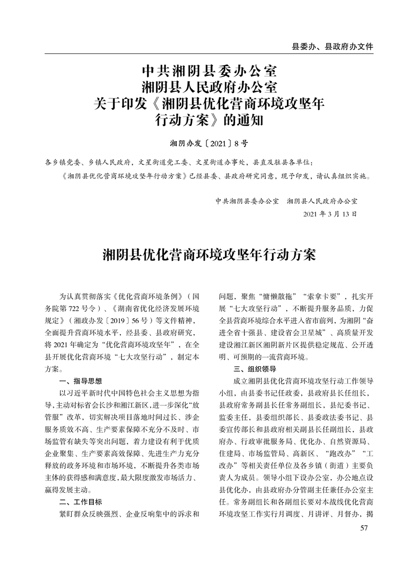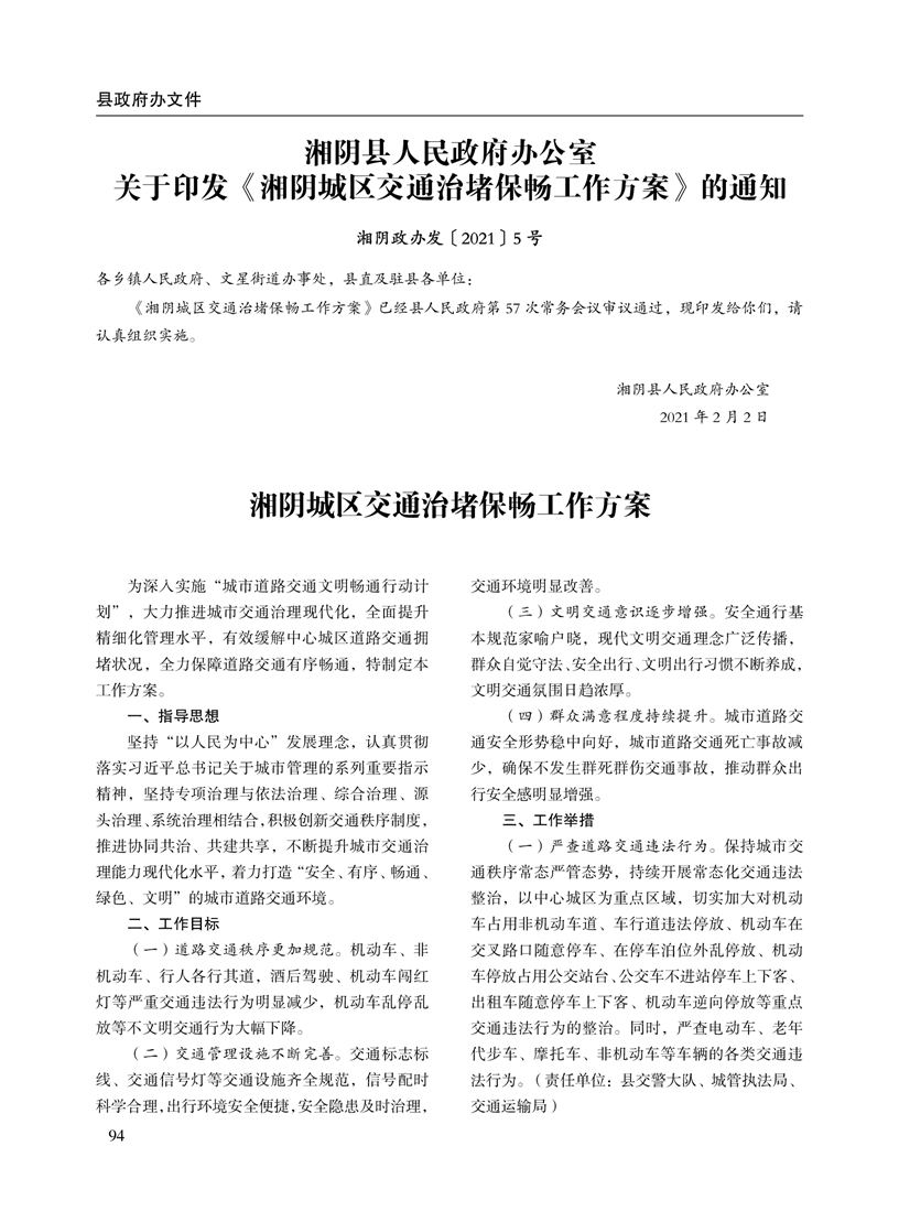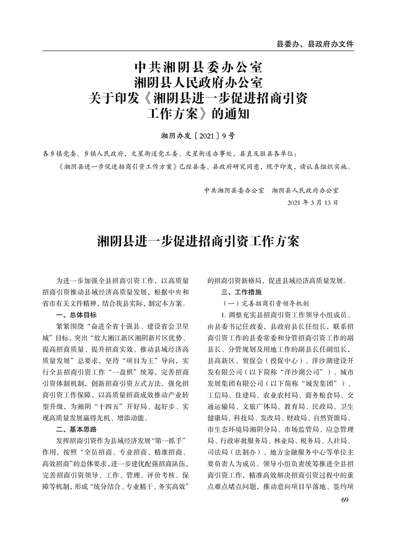 湘阴县人民政府公报2021年第一期 出版日期:2021年04月12日出版