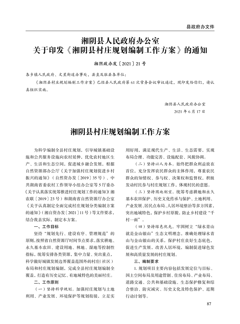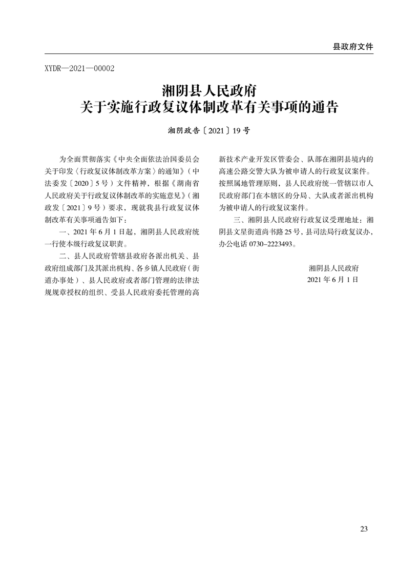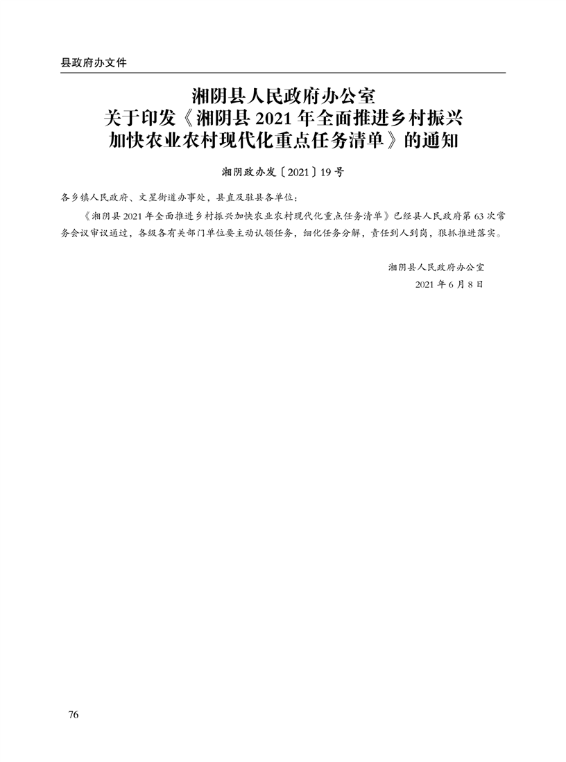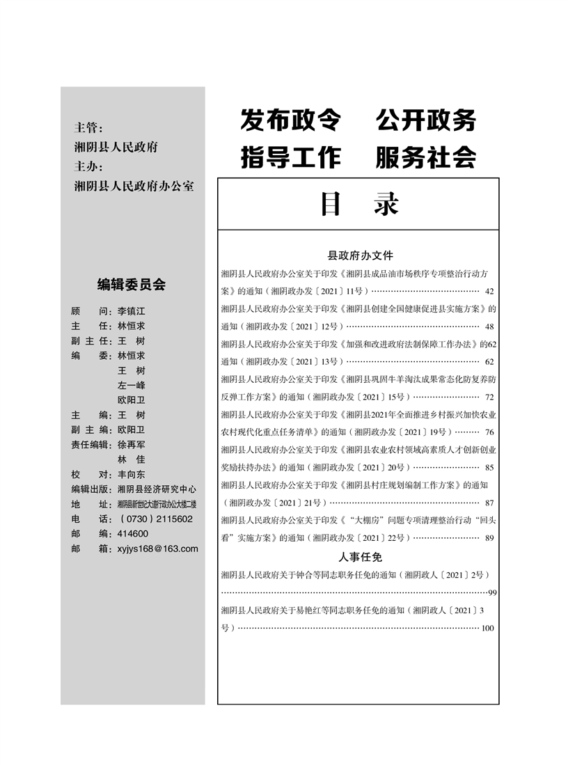 湘阴县人民政府公报2021年第二期 出版日期:2021年07月12日出版