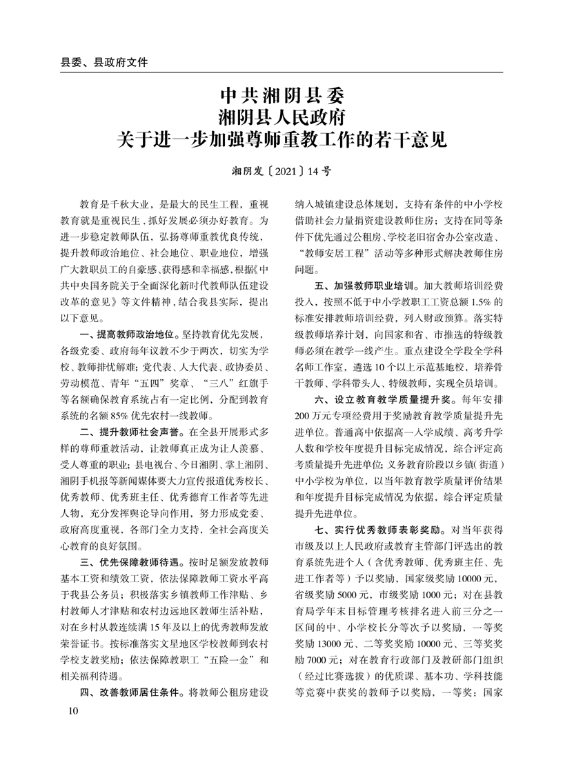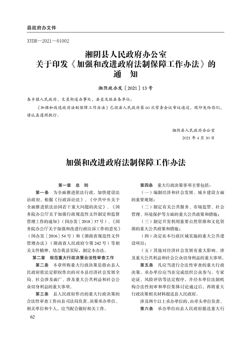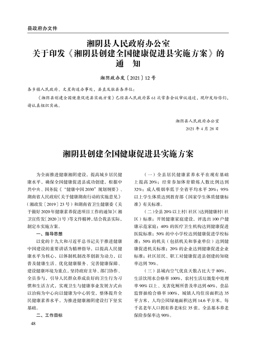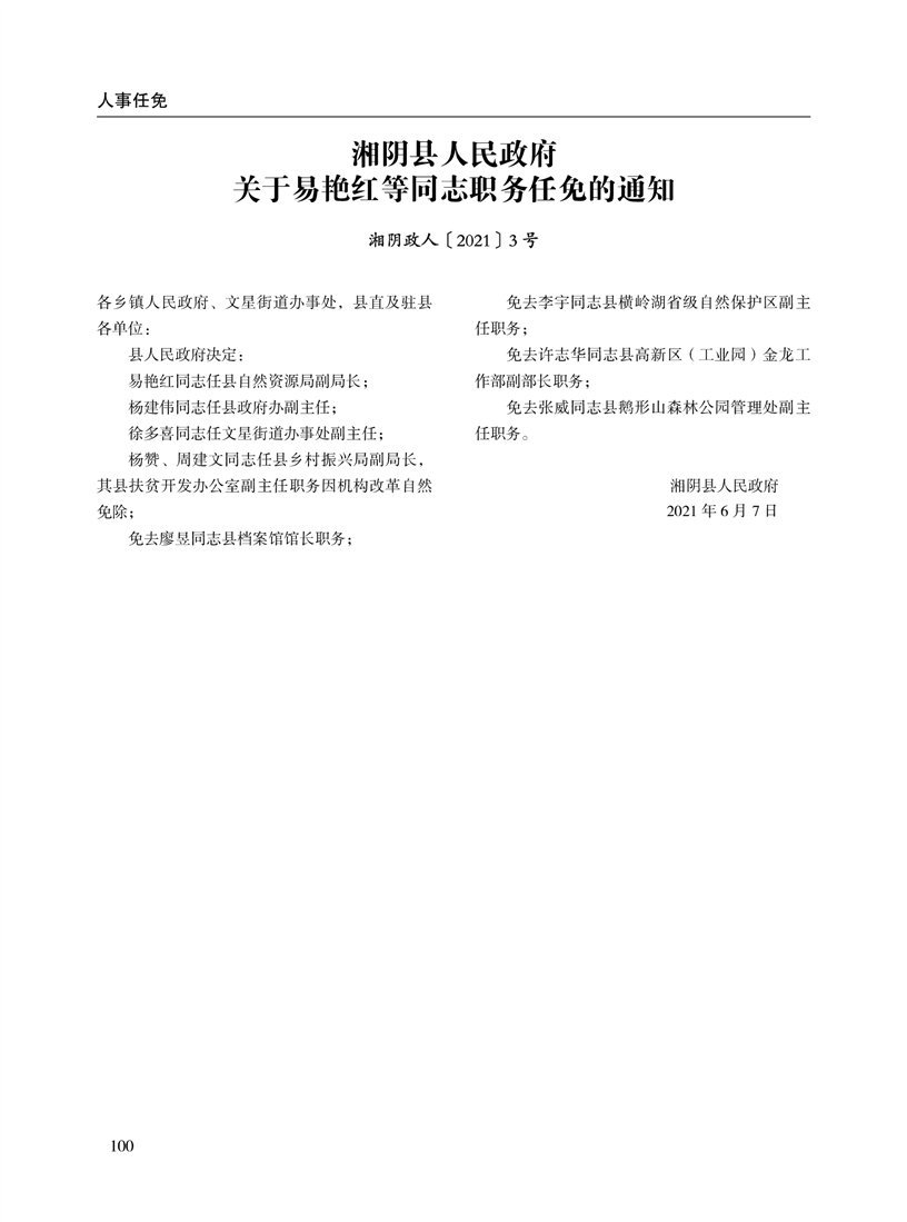 湘阴县人民政府公报2021年第二期 出版日期:2021年07月12日出版