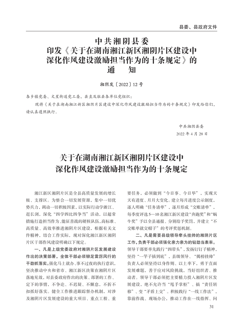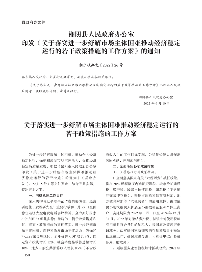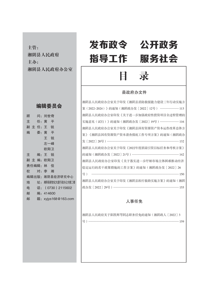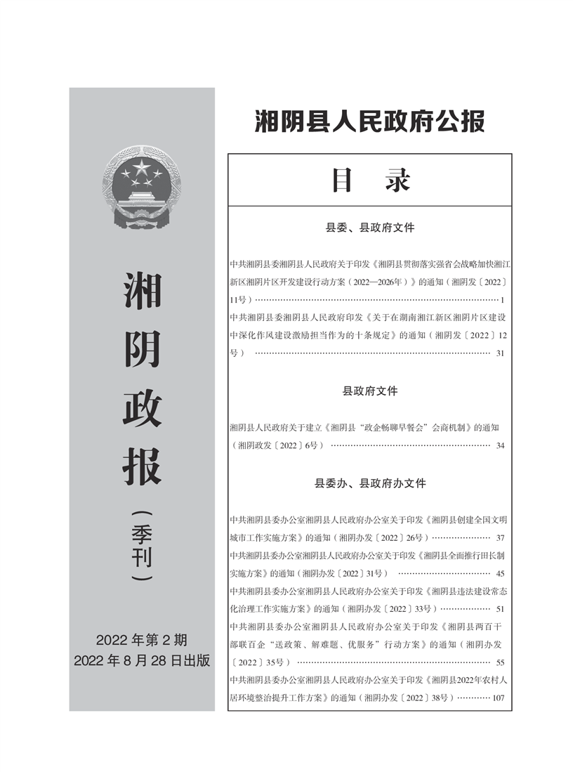 湘阴县人民政府公报2022年第二期 出版日期:2022年08月28日出版
