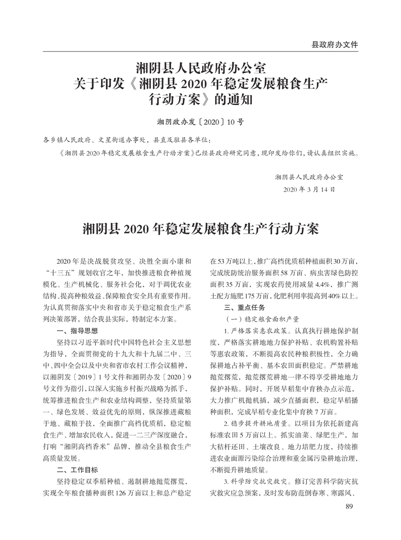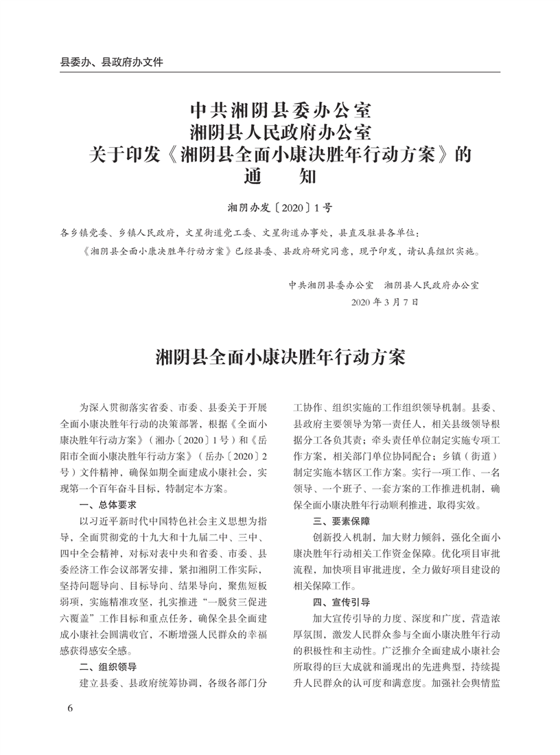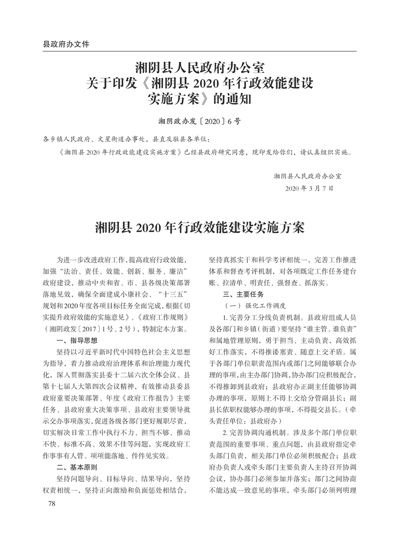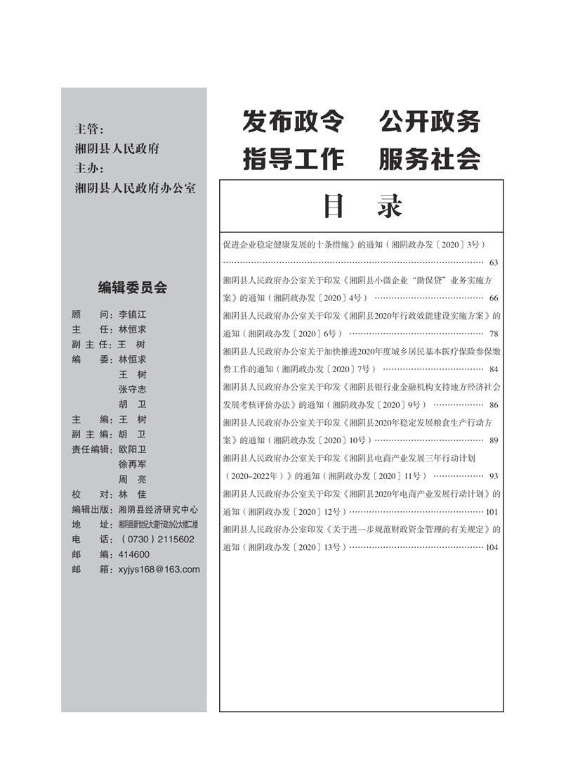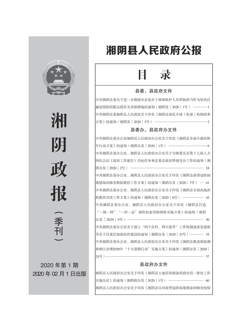 湘阴县人民政府公报2020年第一期 出版日期:2020年02月05日出版
