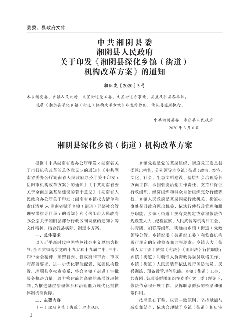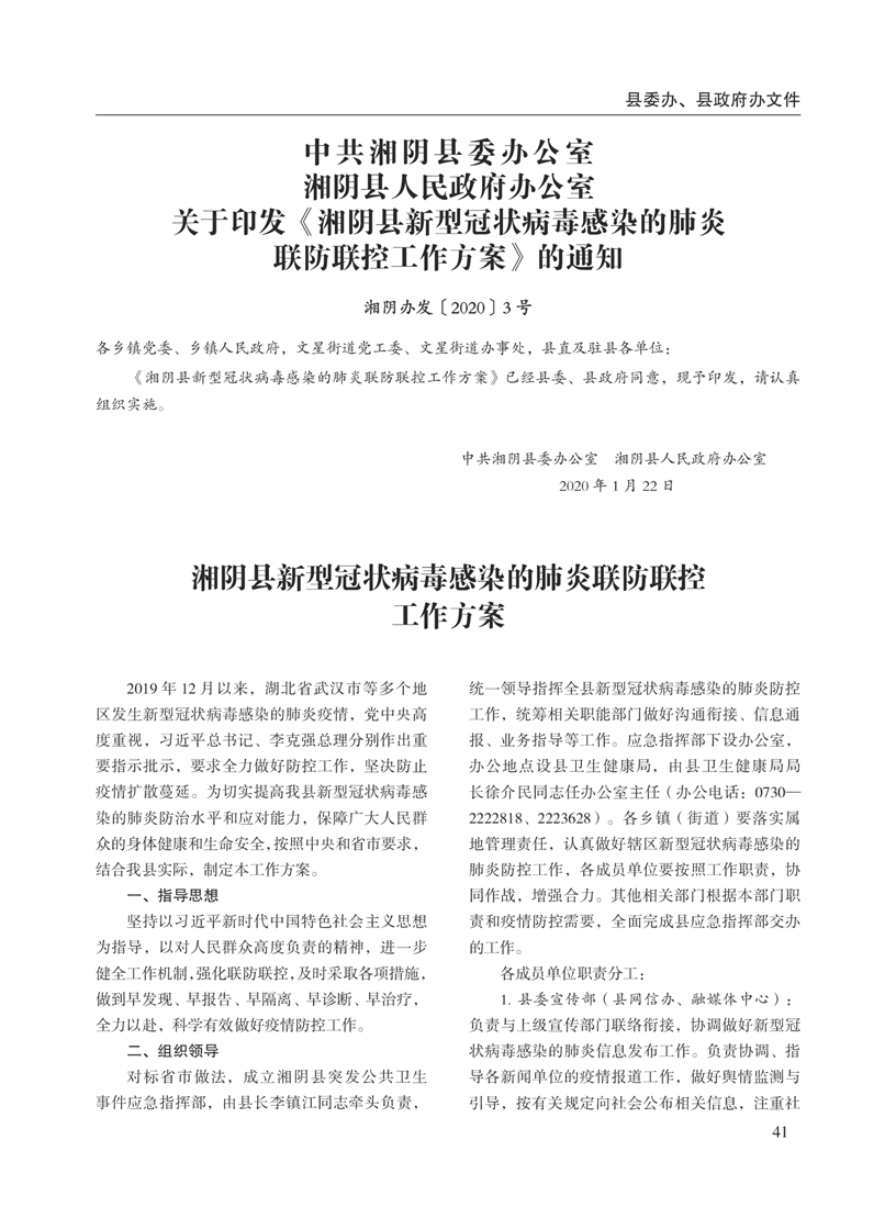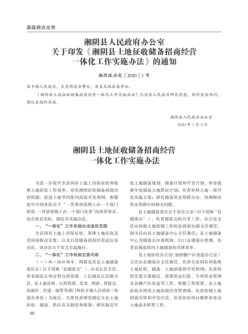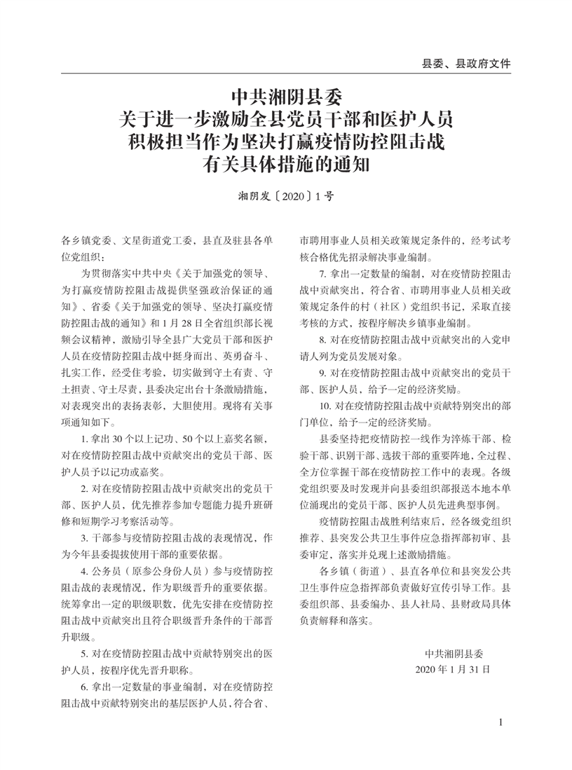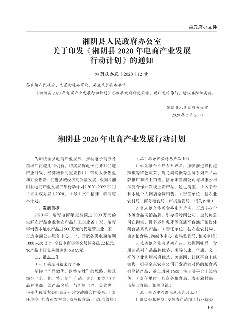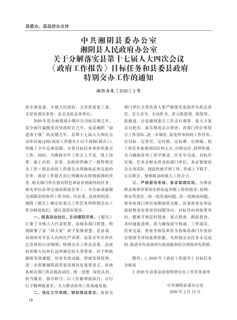湘阴县人民政府公报2020年第一期 出版日期:2020年02月05日出版