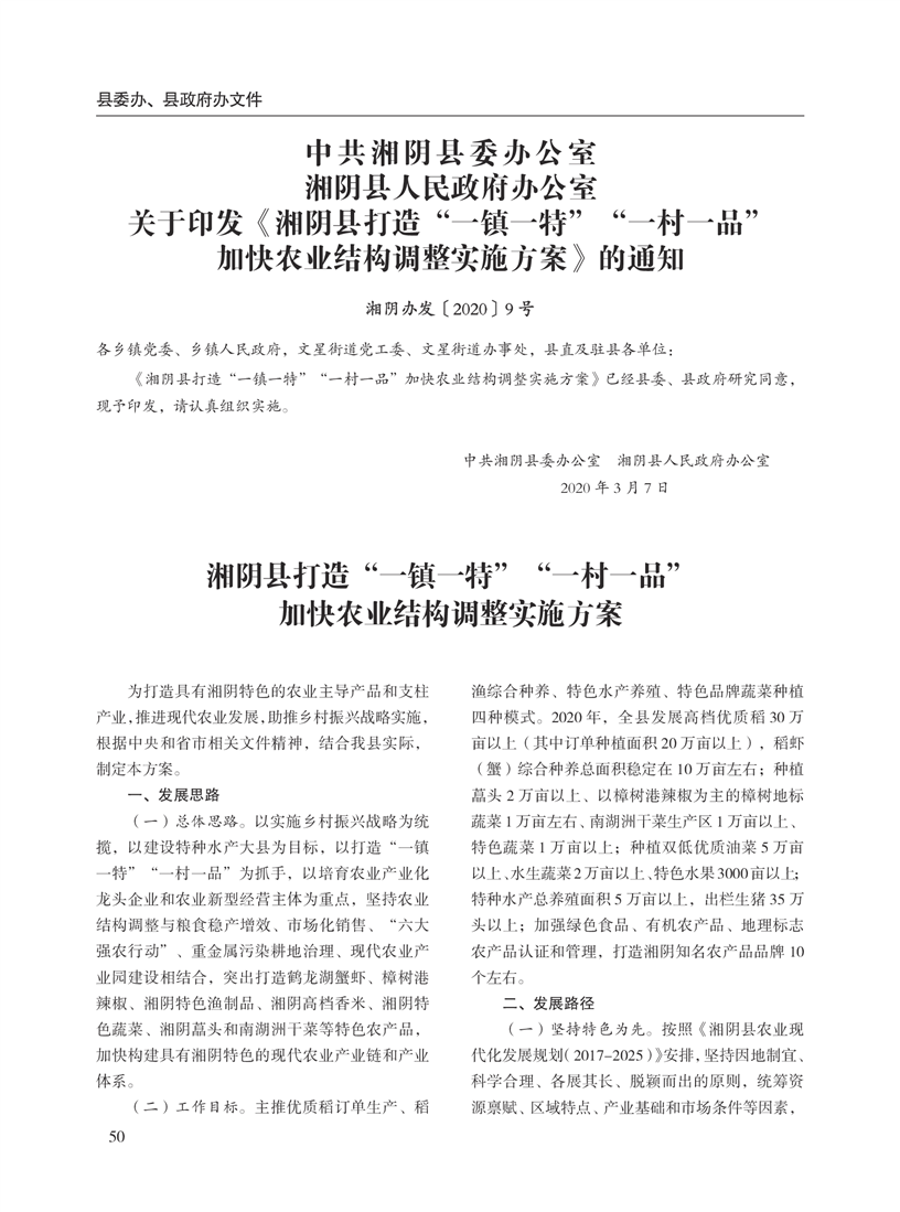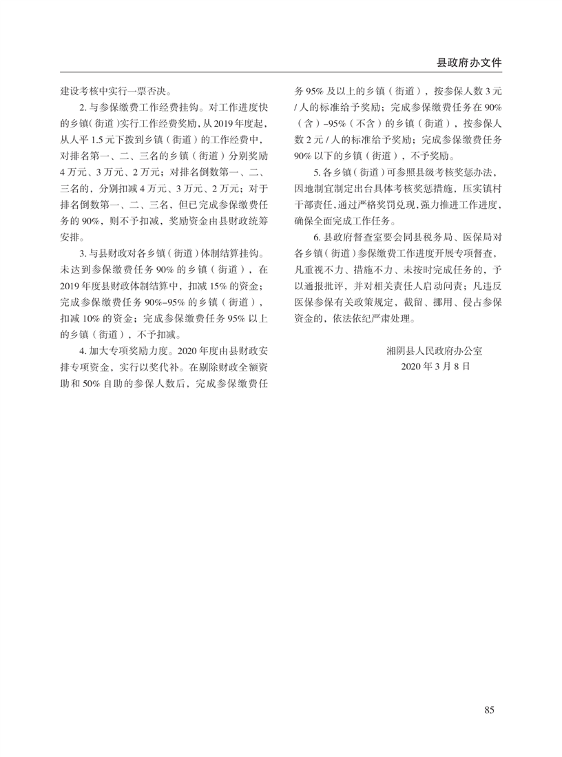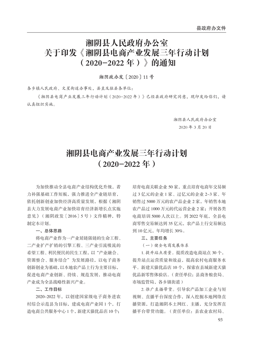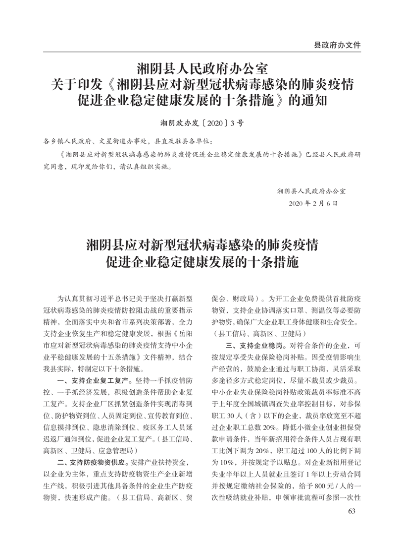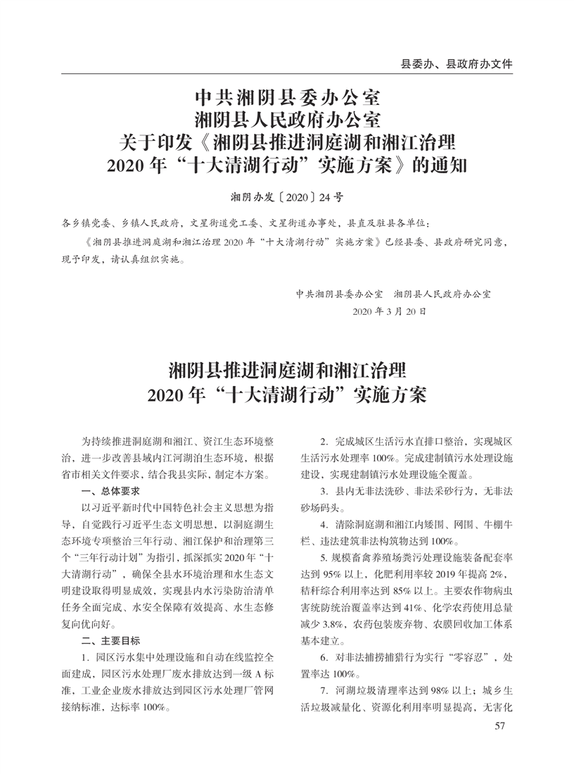湘阴县人民政府公报2020年第一期 出版日期:2020年02月05日出版