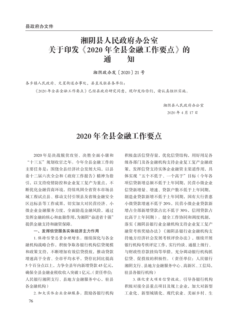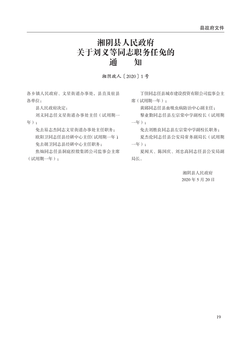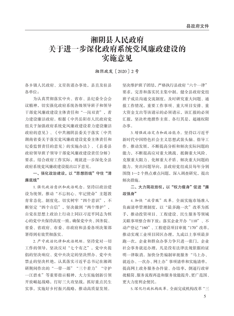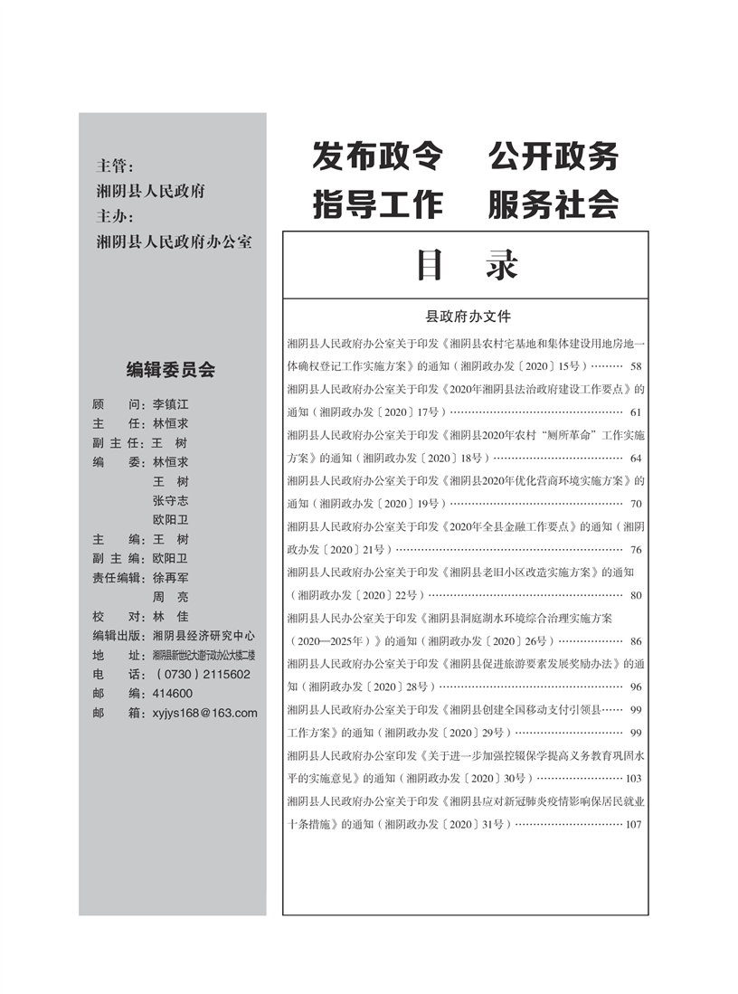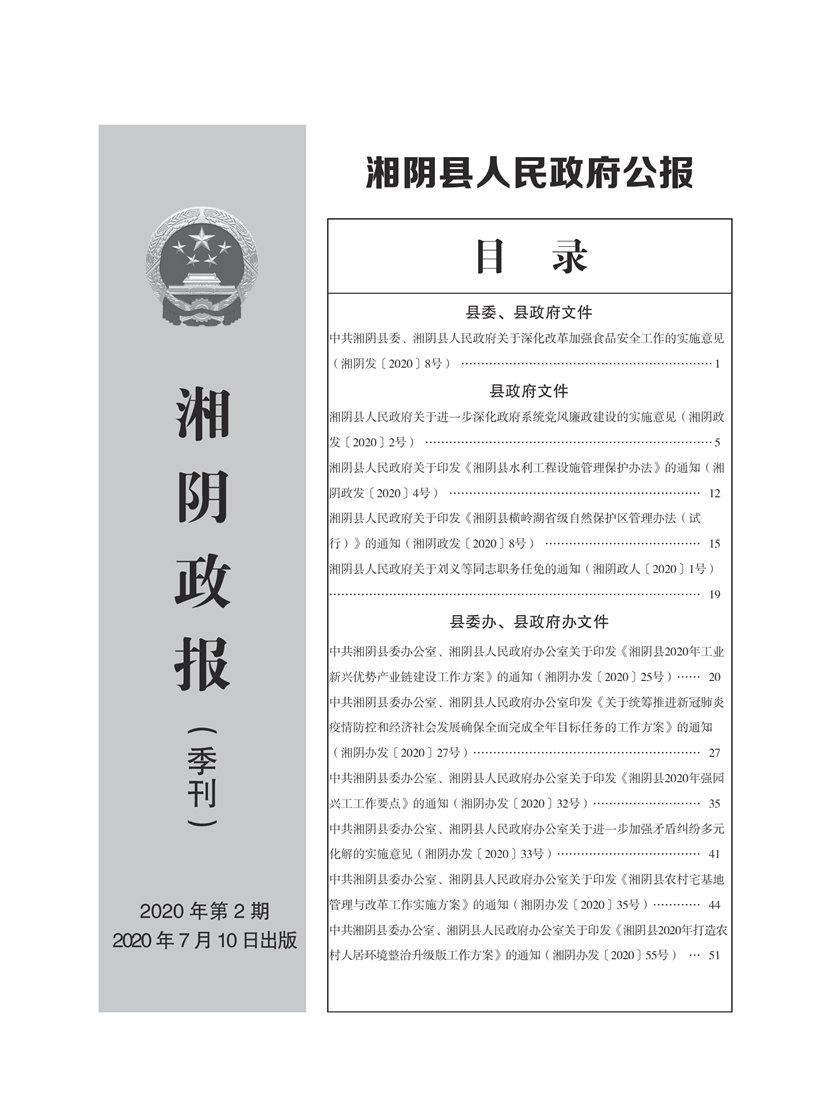 湘阴县人民政府公报2020年第二期 出版日期:2020年07月15日出版