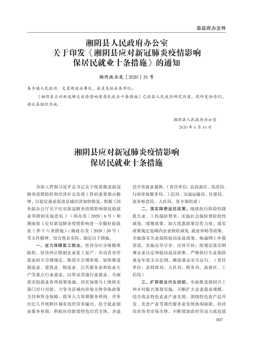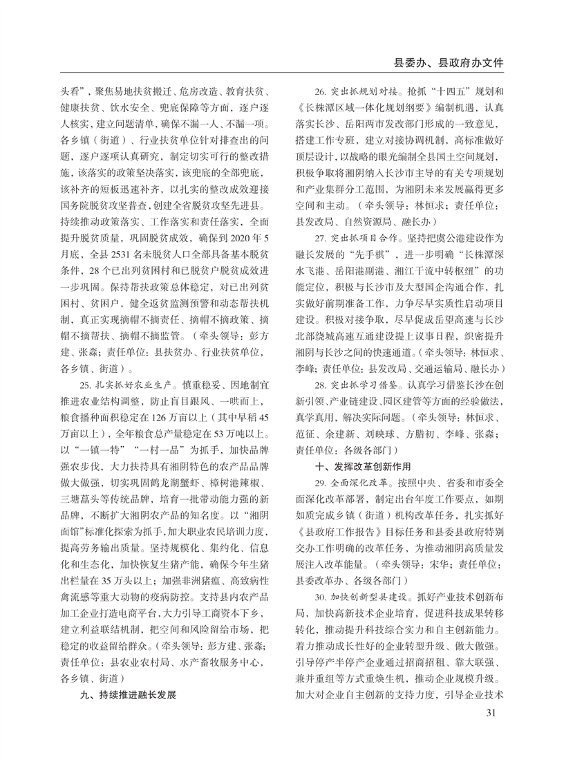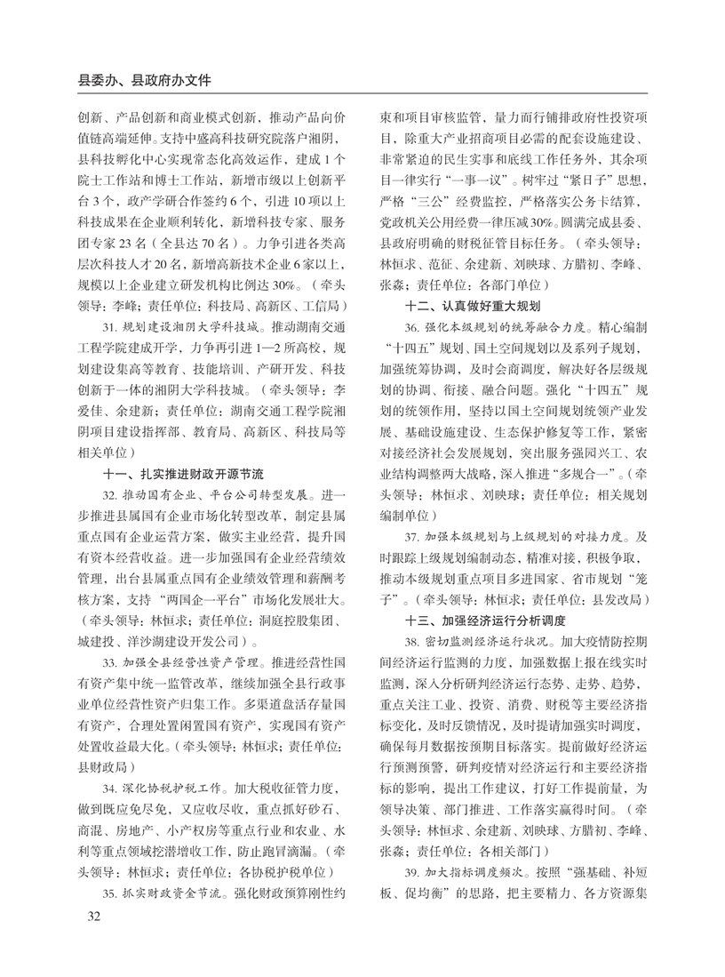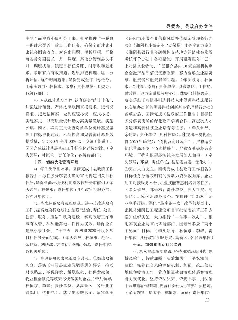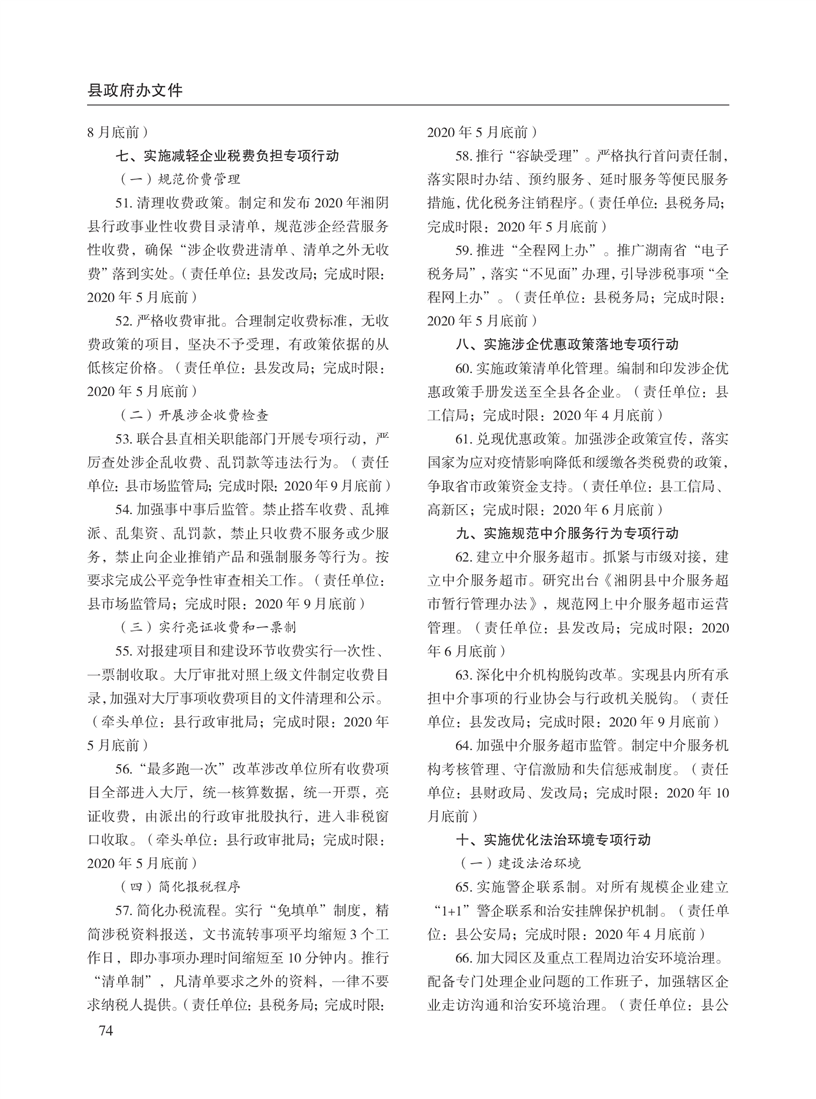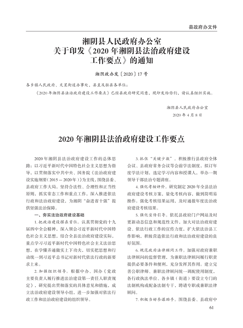 湘阴县人民政府公报2020年第二期 出版日期:2020年07月15日出版