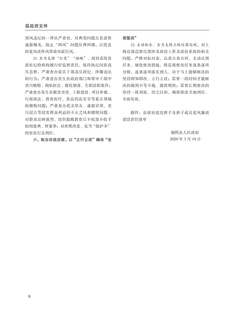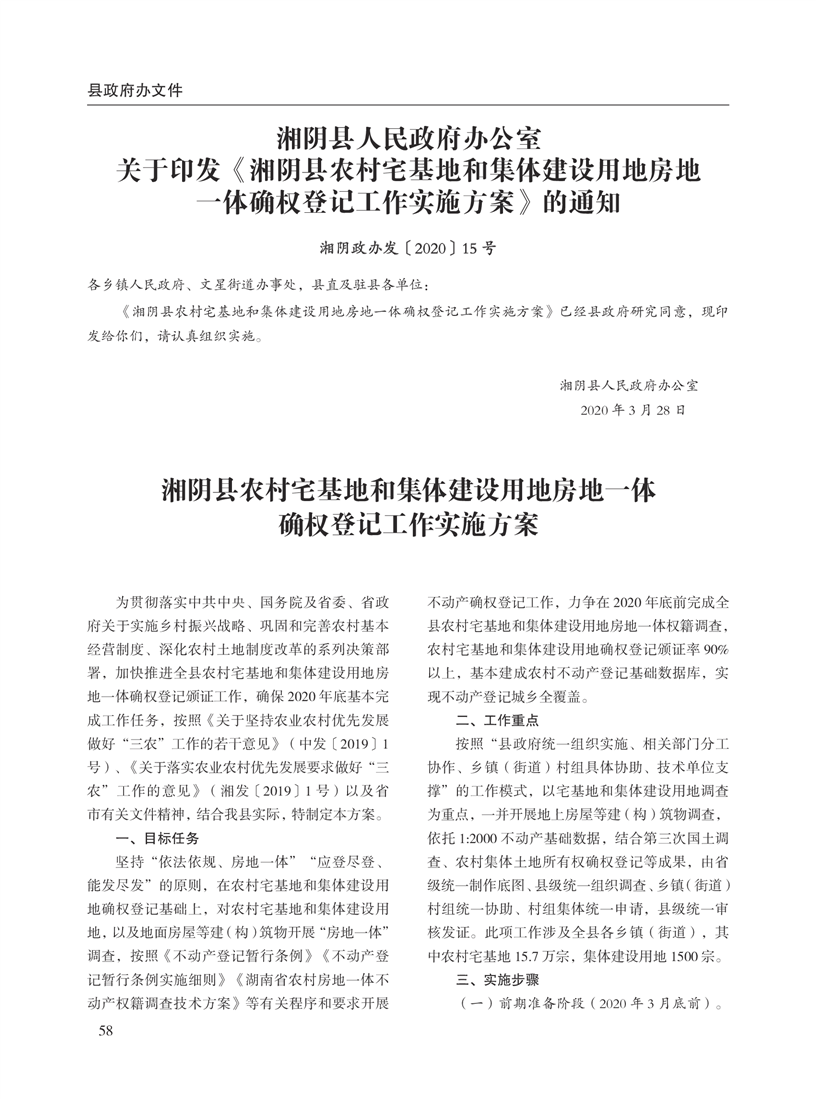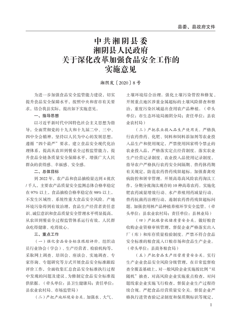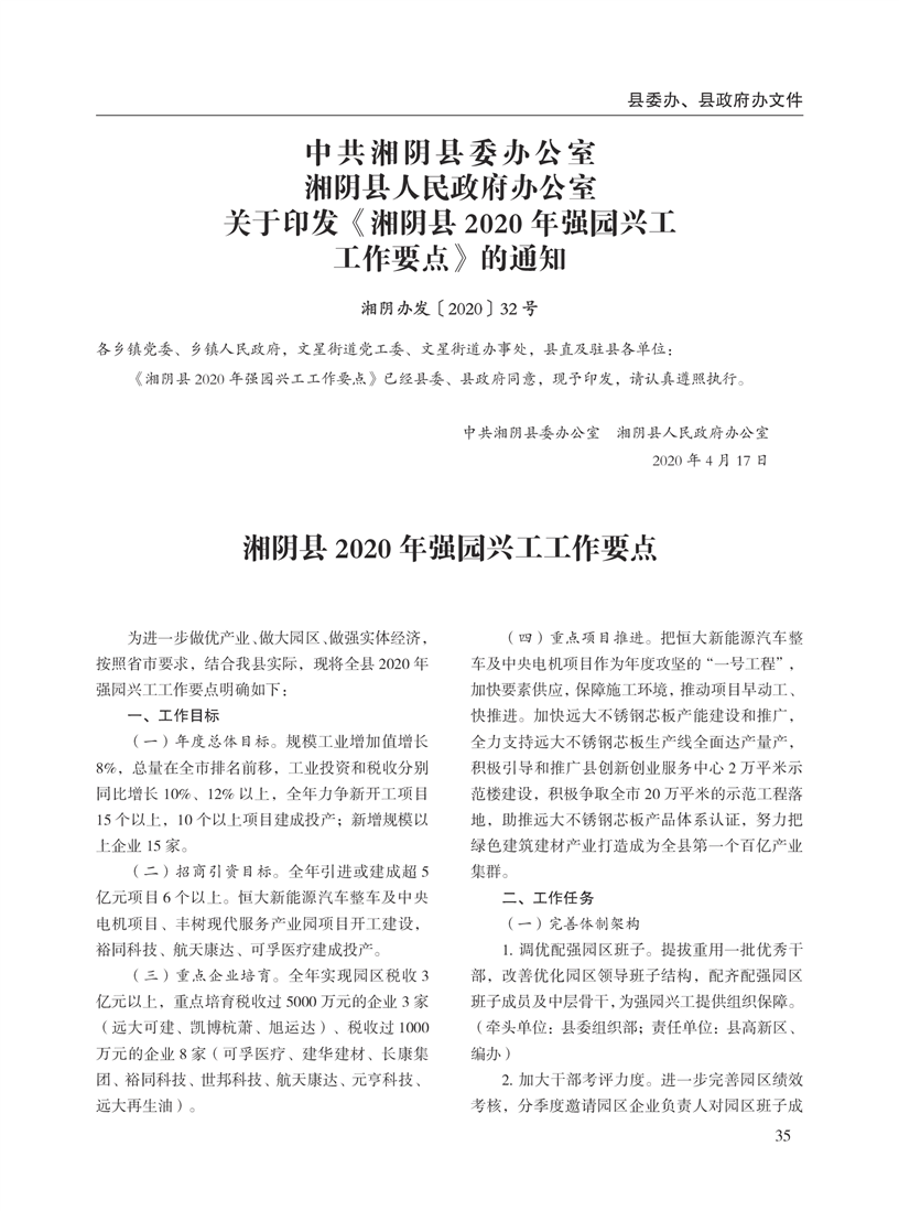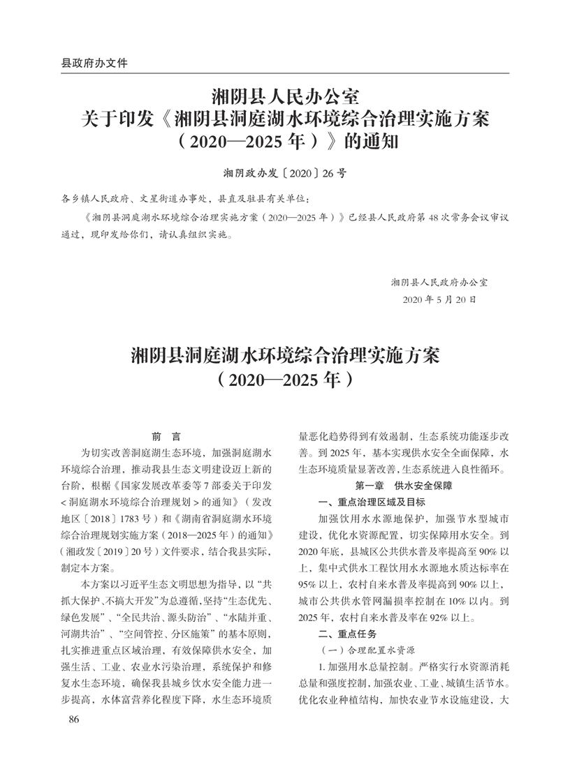 湘阴县人民政府公报2020年第二期 出版日期:2020年07月15日出版