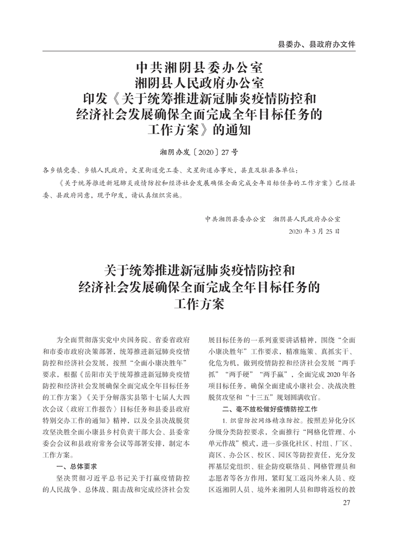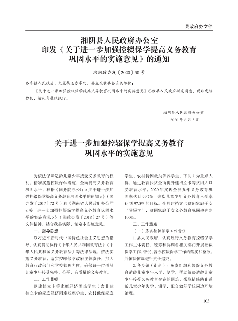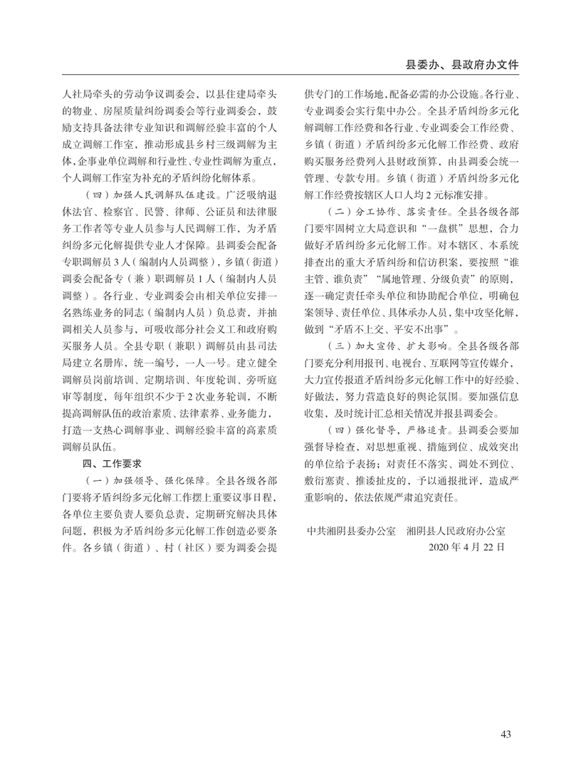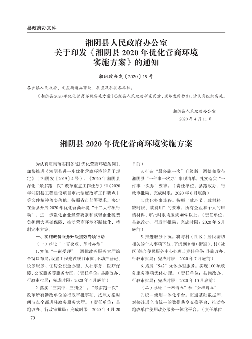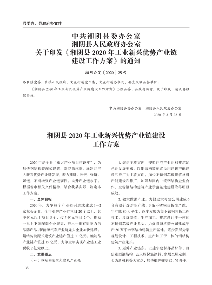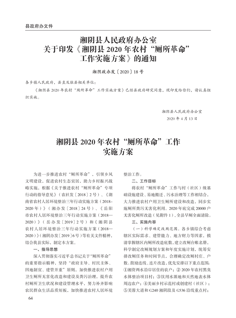 湘阴县人民政府公报2020年第二期 出版日期:2020年07月15日出版
