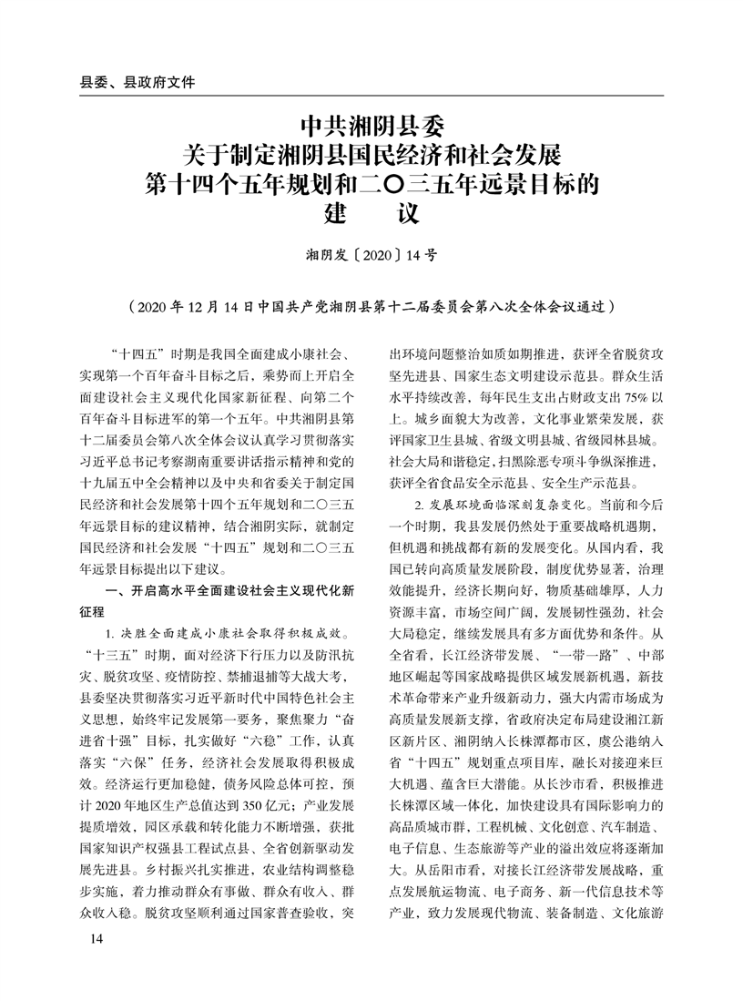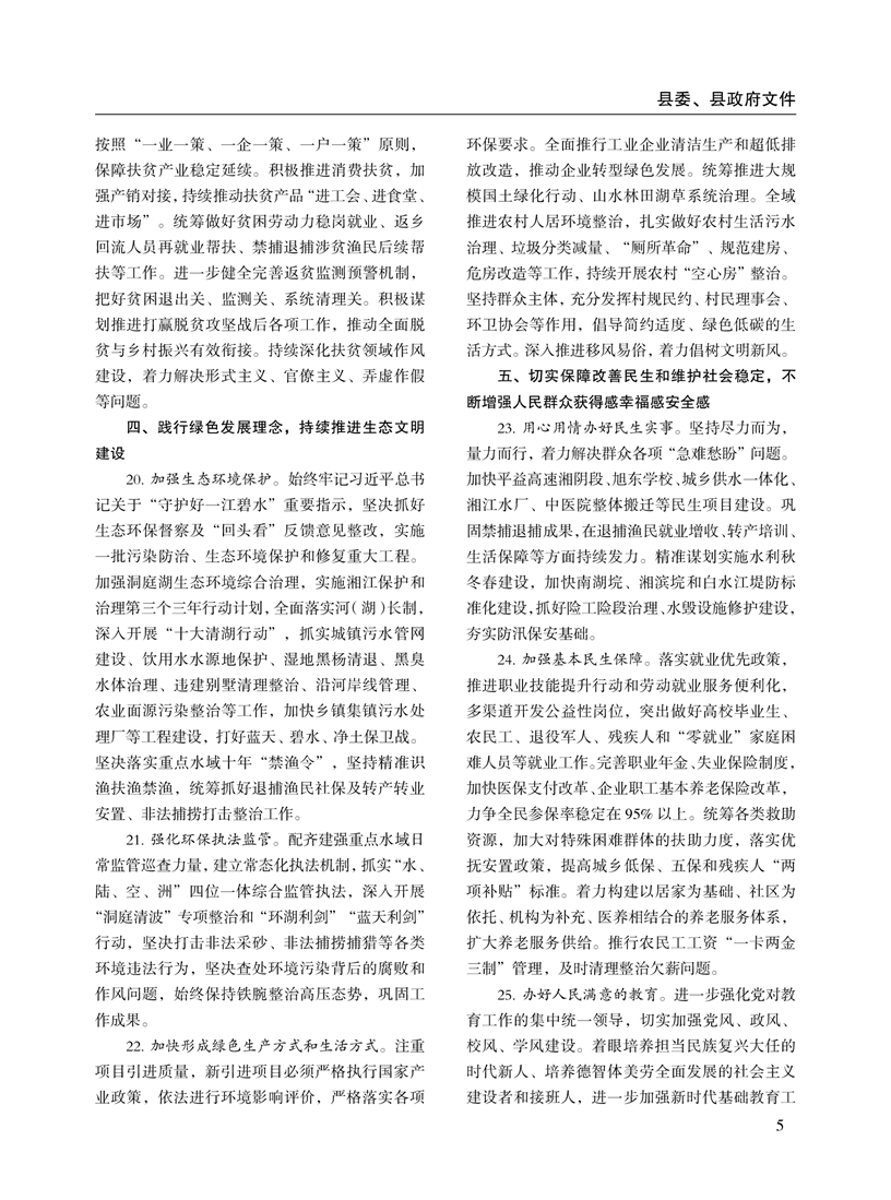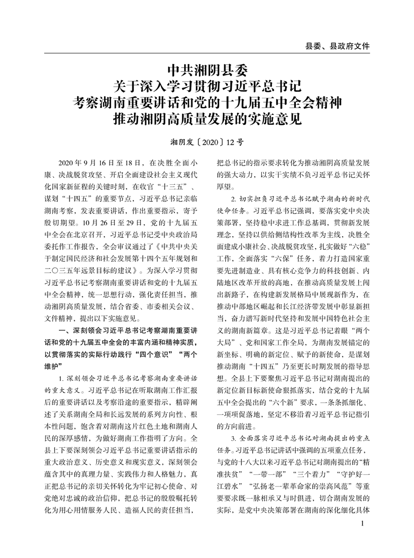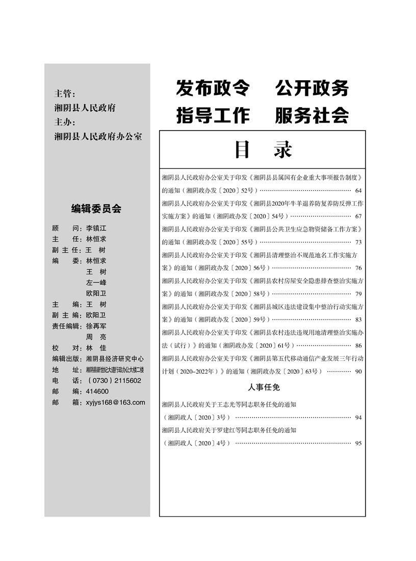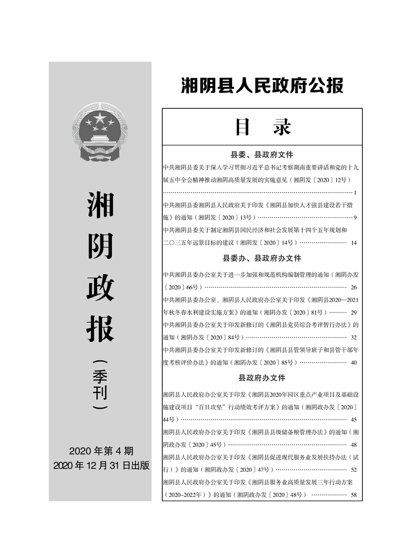 湘阴县人民政府公报2020年第四期 出版日期:2020年12月31日出版