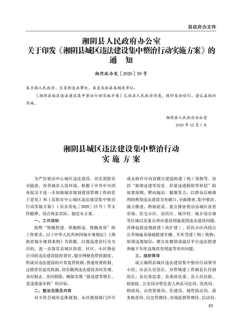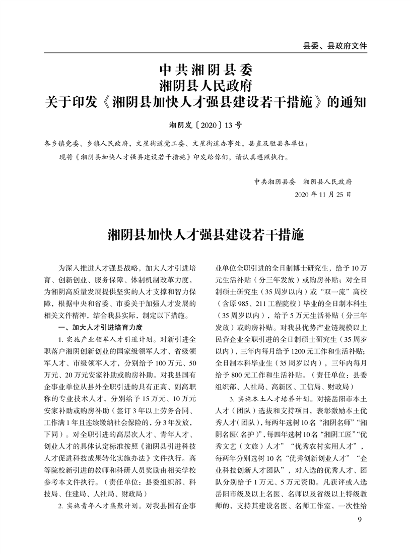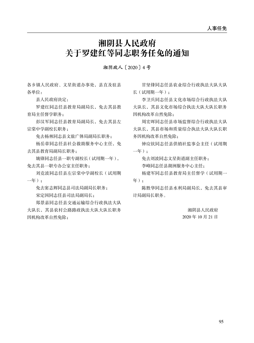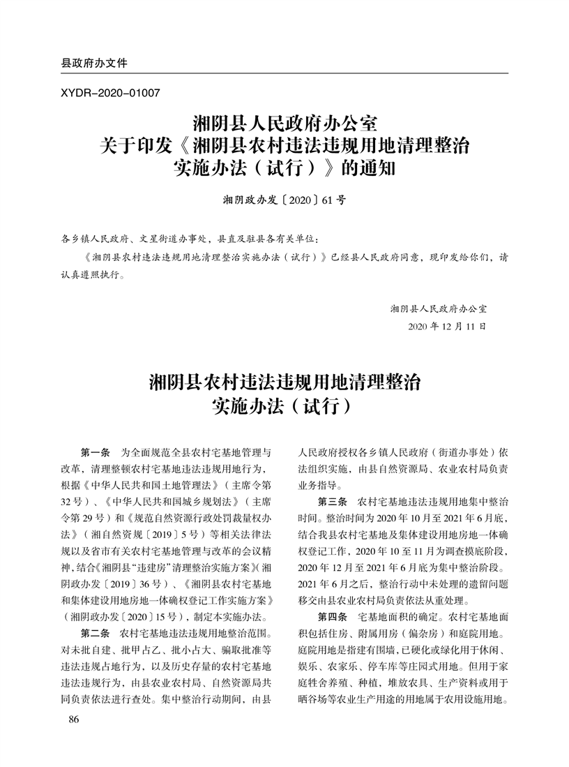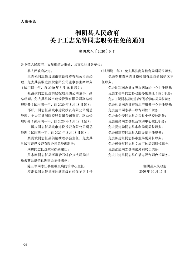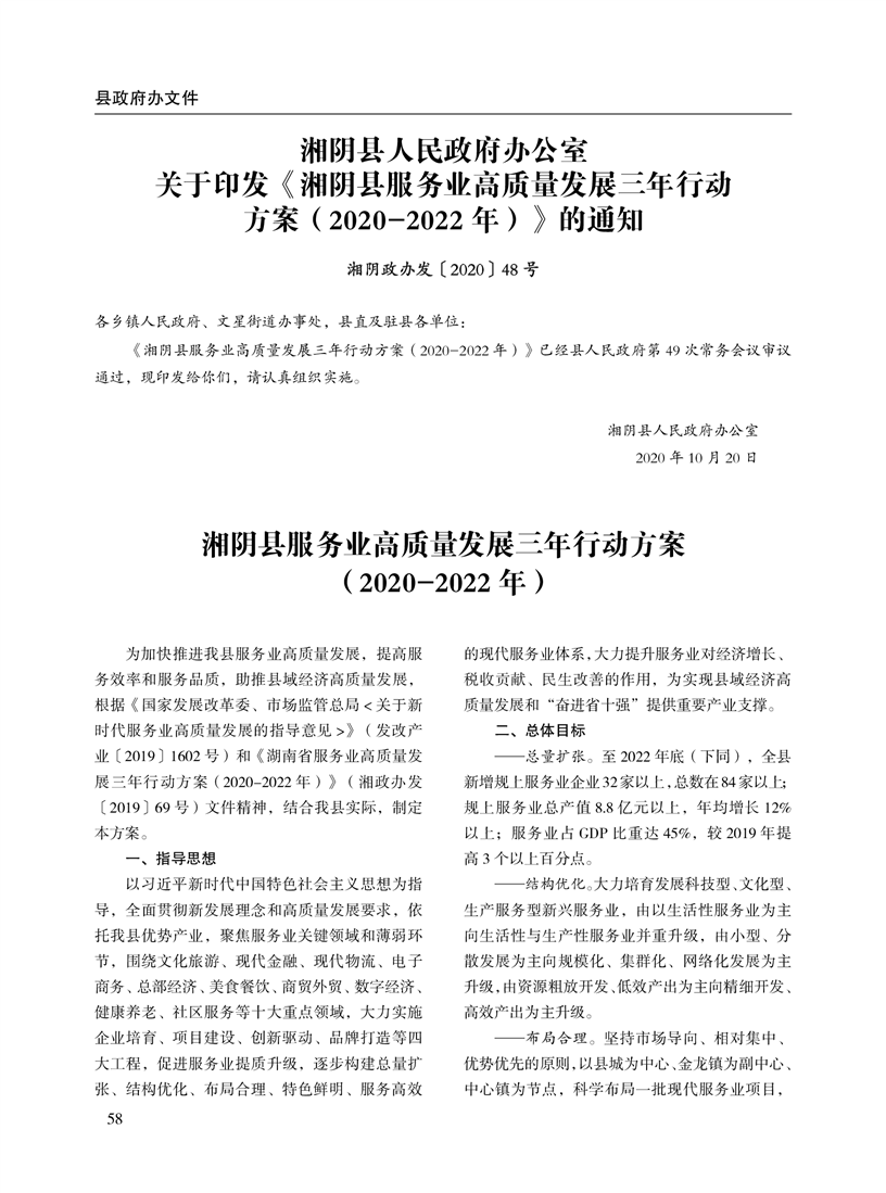 湘阴县人民政府公报2020年第四期 出版日期:2020年12月31日出版