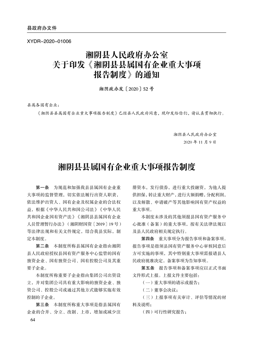 《湘阴县人民政府公报》是由湘阴县人民政府主办并公开发行的政府出版物,主要刊载湘阴县政府规章和行政规范性文件,是政府信息公开的重要载体。根据《中华人民共和国立法法》等有关规定,在《湘阴县人民政府公报》上刊登的政府规章和行政规范性文件文本为标准文本,与正式文件具有同等效力。