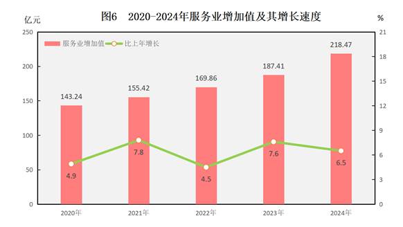 全年批发和零售业增加值40.94亿元,比上年增长7.8%;交通运输、仓储和邮政业增加值14.72亿元,增长14.2%;住宿和餐饮业增加值20.17亿元,增长11.3%;金融业增加值7.22亿元,增长5.4%;房地产业增加值19.60亿元,下降3.0%;信息传输、软件和信息技术服务业增加值2.98亿元,增长2.3%;租赁和商务服务业增加值13.91亿元,增长0.8%。全年实现规模以上服务业企业营业收入45.36亿元,比上年增长21.5%。