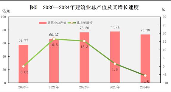 全县具有资质等级的总承包和专业承包建筑业企业47家,全年实现建筑业总产值73.38亿元,比上年下降5.6%。