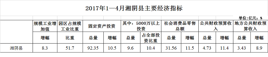 2017年1—4月湘阴县主要经济指标