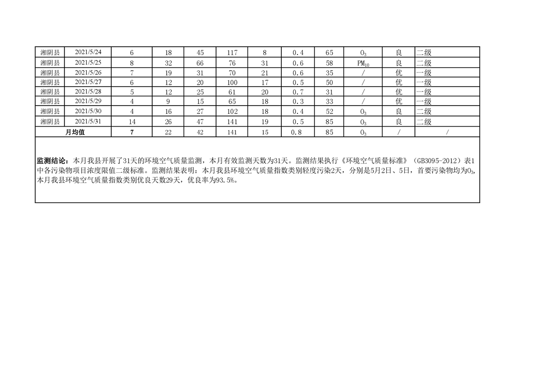2021年5月份空气质量报表