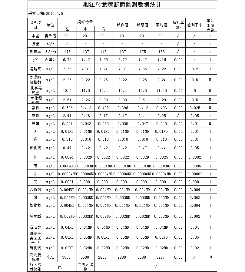 湘江乌龙嘴断面监测数据统计(4月)