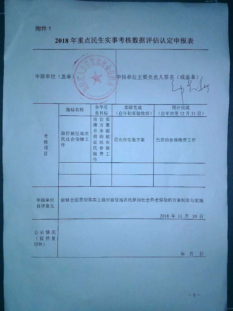 2018年重点民生实事考核数据评估认定申报表