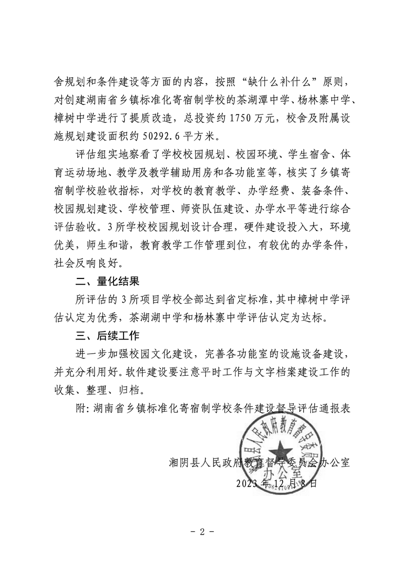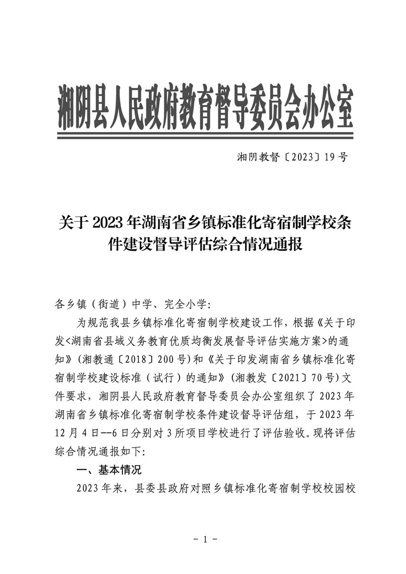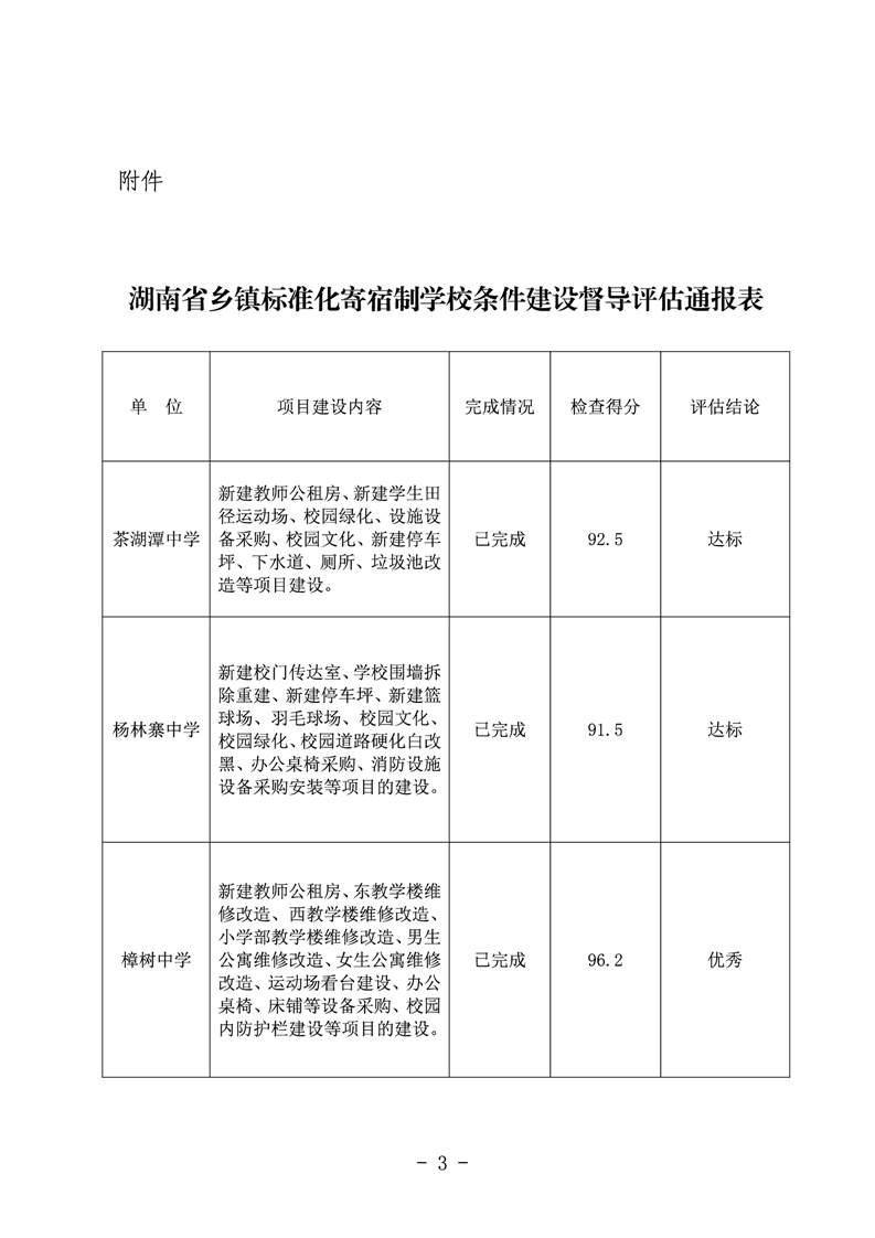 关于2023年湖南省乡镇标准化寄宿制学校条件建设督导评估综合情况通报