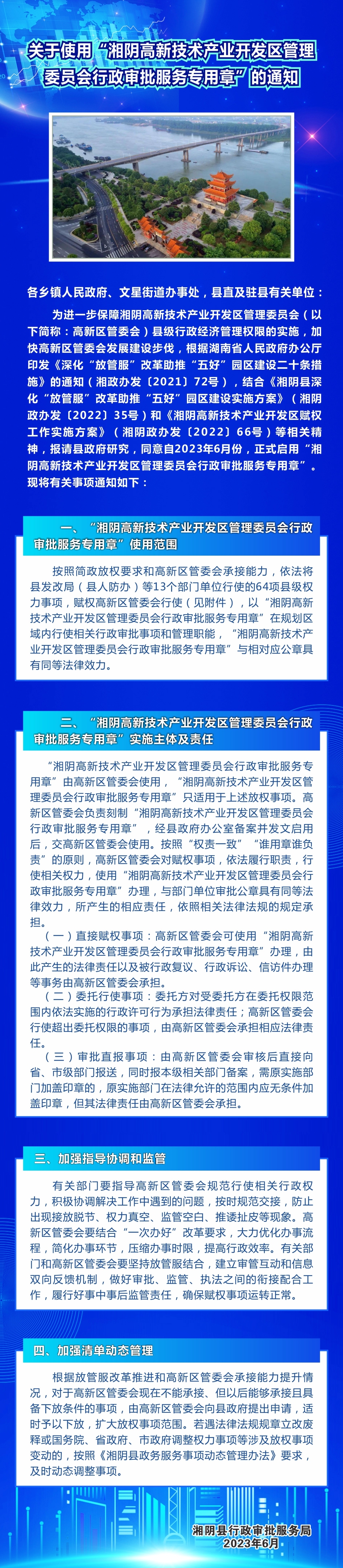 解读:《关于使用“湘阴高新技术产业开发区管理委员会行政审批服务专用章”的通知》