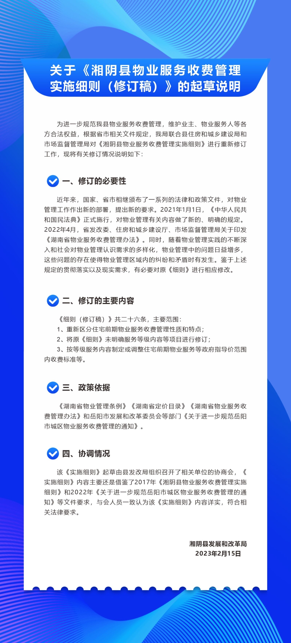 关于《湘阴县物业服务收费管理实施细则 (修订稿)》的起草说明