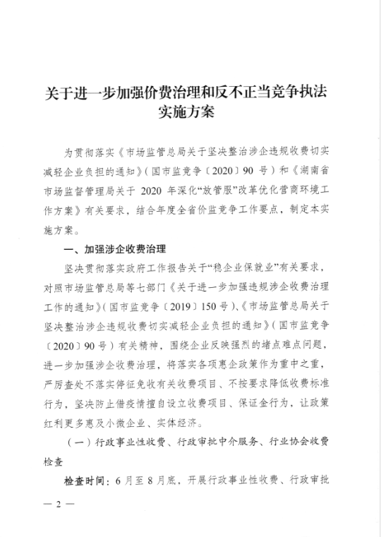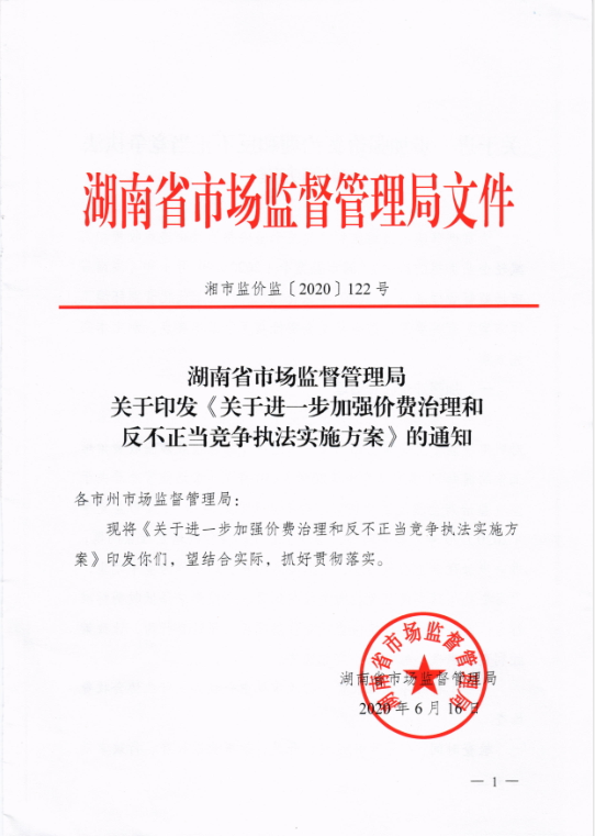 湖南省市场监督管理局关于印发《关于进一步加强价格治理和反不正当竞争执法实施方案》的通知