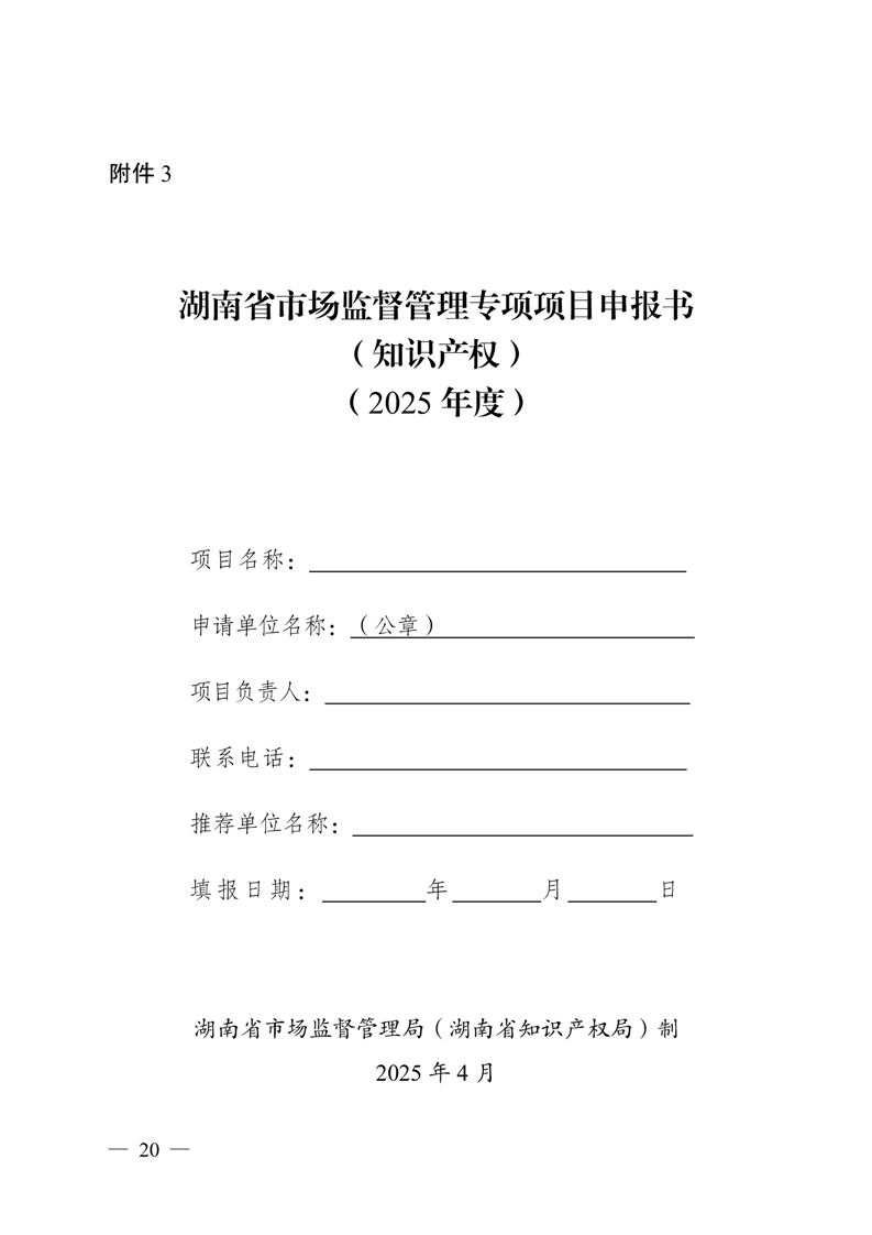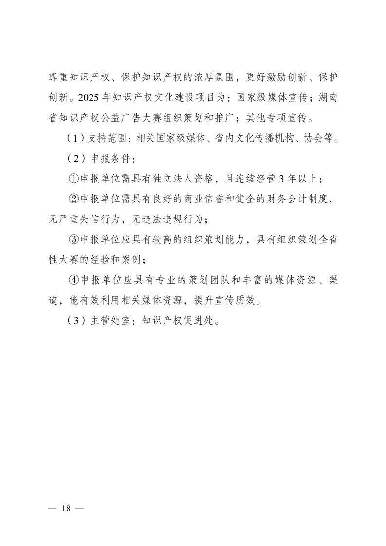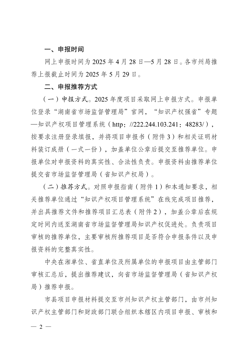 关于组织申报2025年度湖南省市场监督管理专项(知识产权)项目的通知
