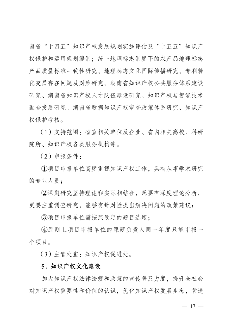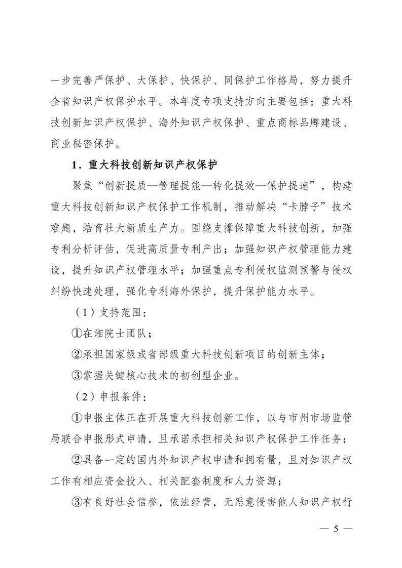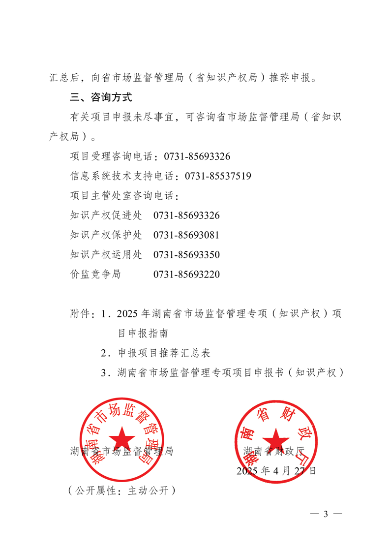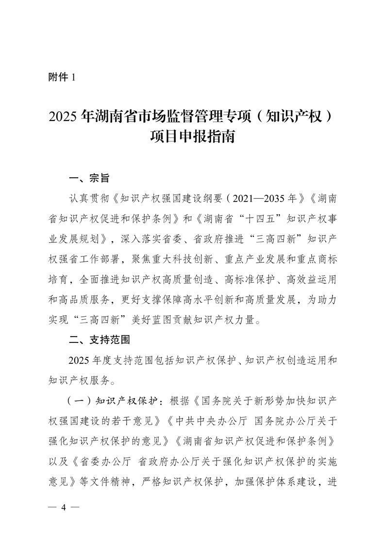 关于组织申报2025年度湖南省市场监督管理专项(知识产权)项目的通知