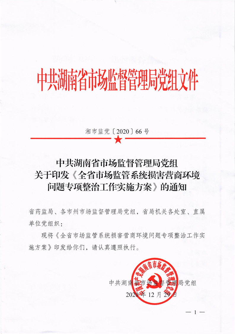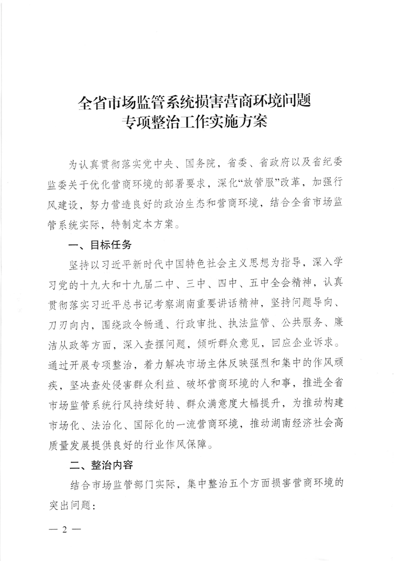 关于印发《全省市场监管体系损害营商环境问题专项整治工作实施方案》的通知