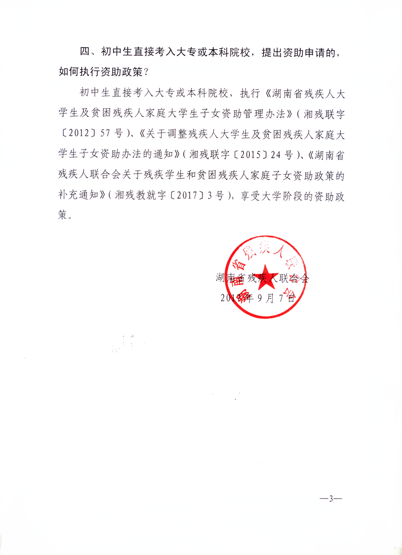 关于残疾学生及残疾人家庭子女资助几个具体问题的处理意见