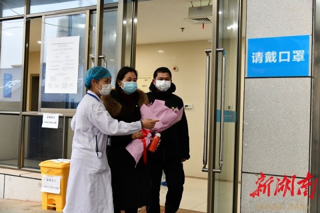 湖南日报·新湖南客户端2月7日讯(通讯员 戴灿 郭雨滴)经岳阳市、湘阴县两级专家会诊,湘阴县首例新型肺炎确诊患者黄某某达到临床治愈标准,2月6日从该县人民医院康复出院。这是湘阴县首例、岳阳市第3例治愈出院的新型肺炎患者。该县人民医院党组书记易洪海,党组副书记、院长鲁国庆为其送上出院报告和祝福。