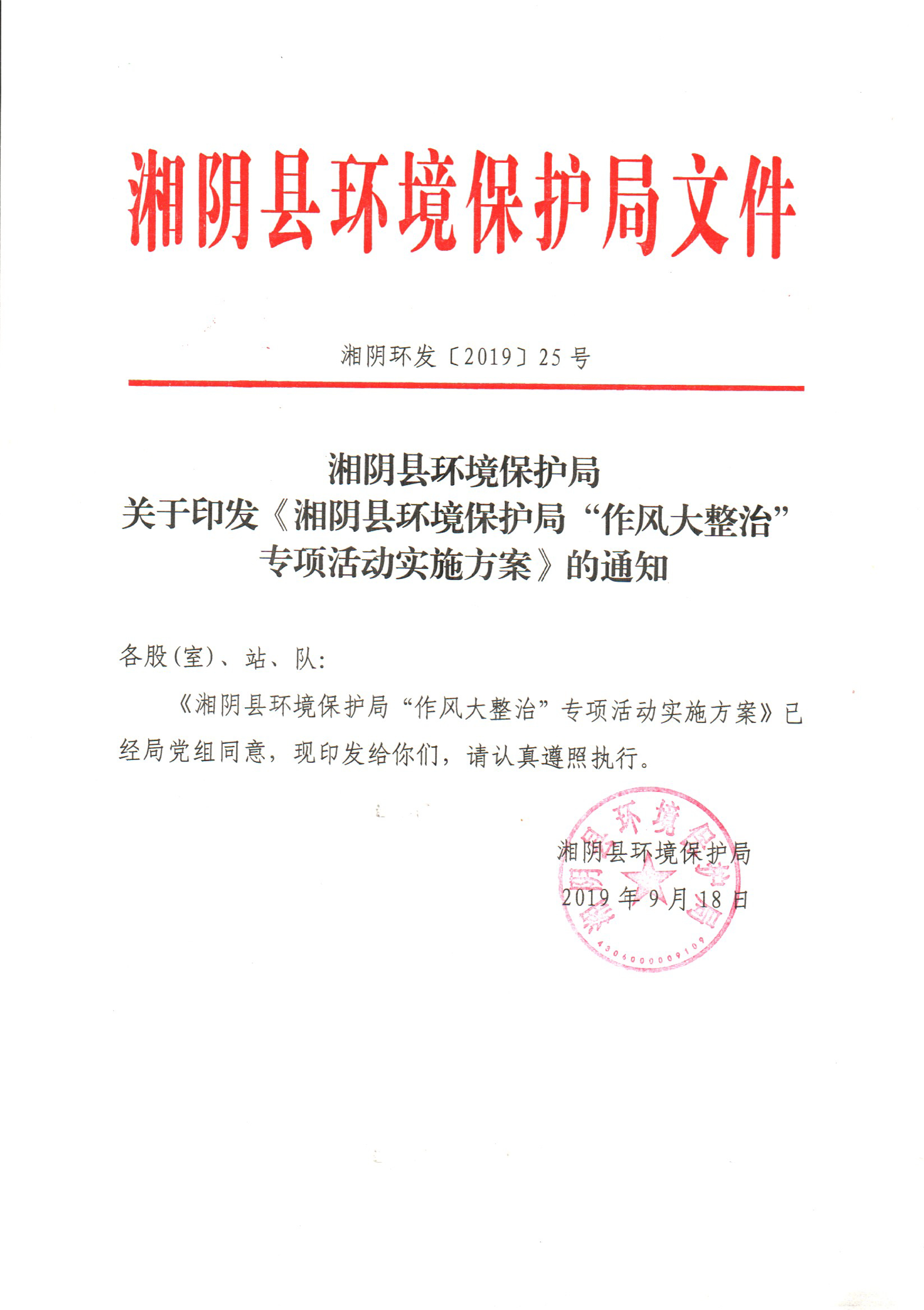 关于印发《湘阴县环境保护局“作风大整治”专项活动实施方案》的通知