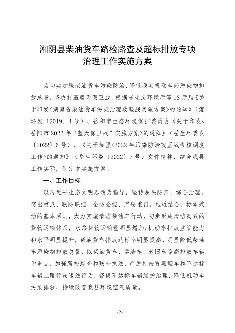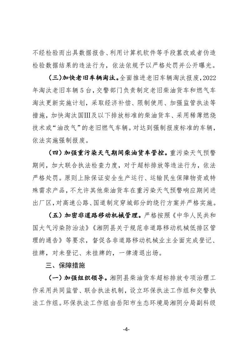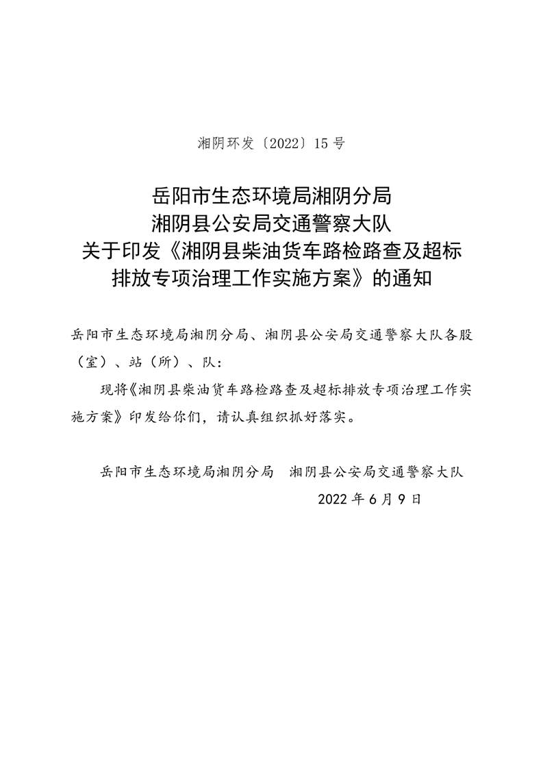 关于印发《湘阴县柴油货车路检路查及超标 排放专项治理工作实施方案》的通知