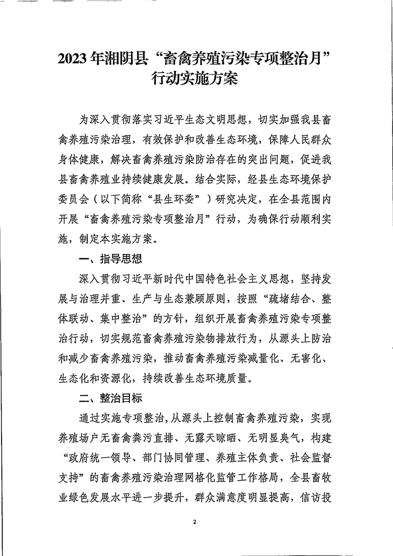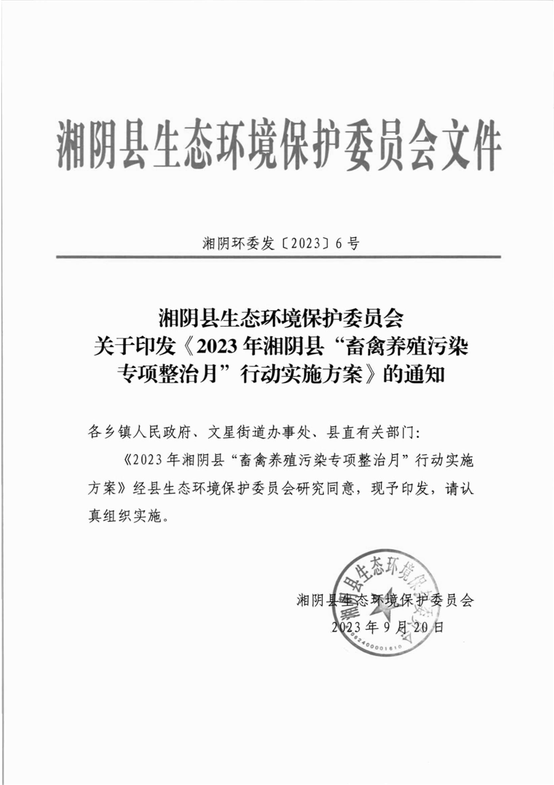 关于印发《2023年湘阴县“ 畜禽养殖污染专项整治月”行动实施方案》的通知