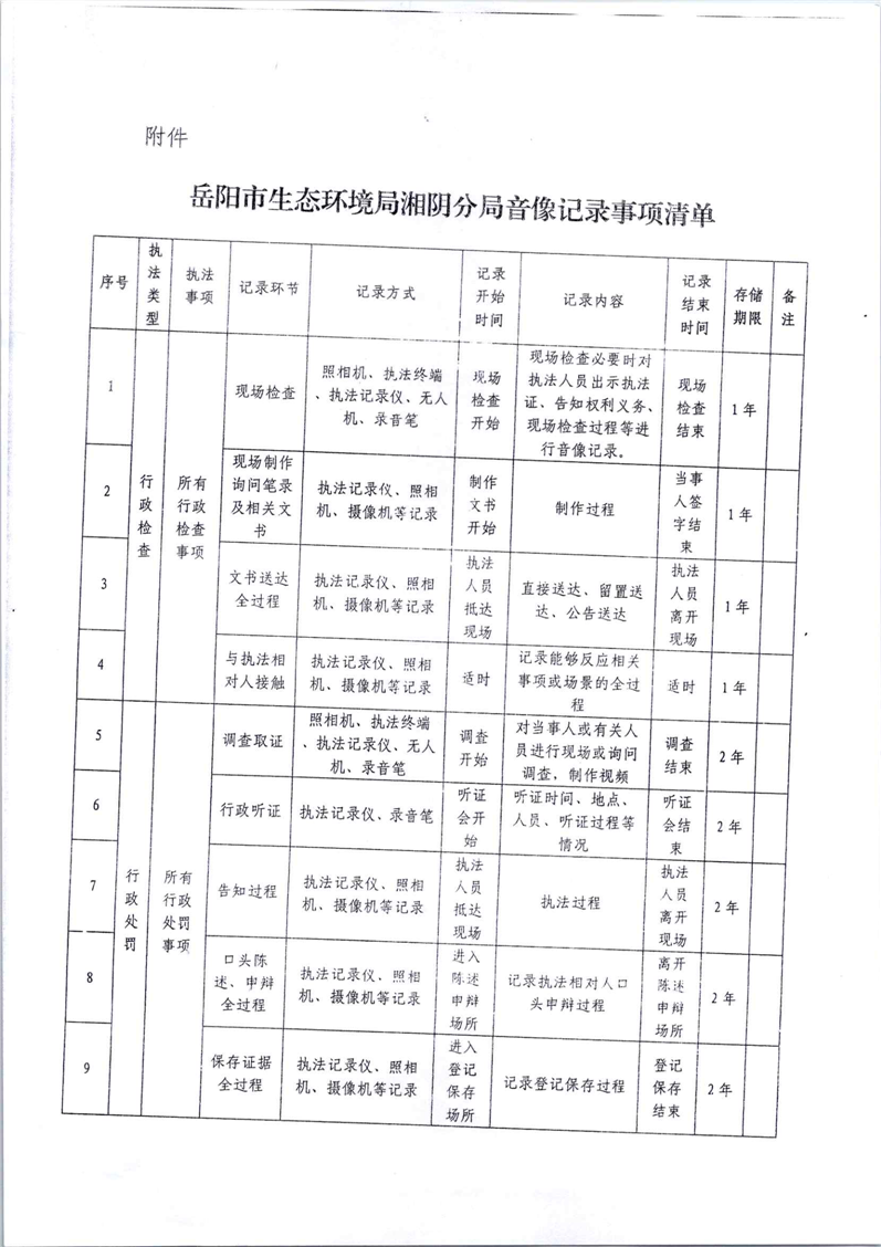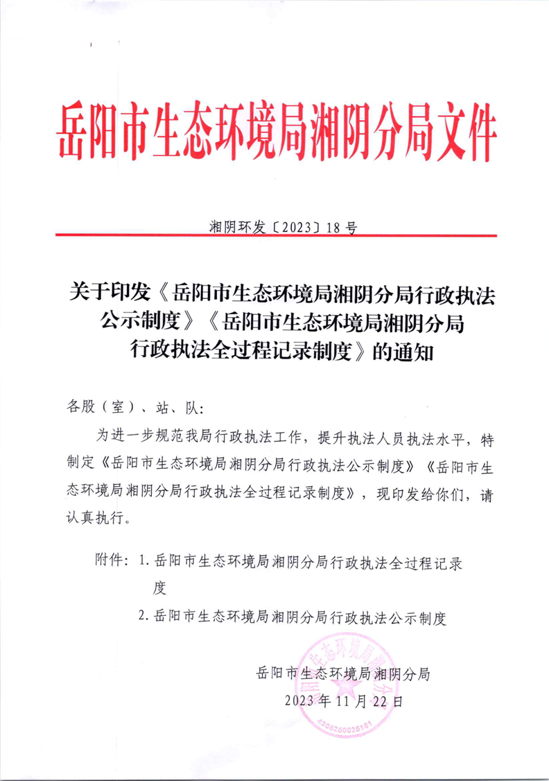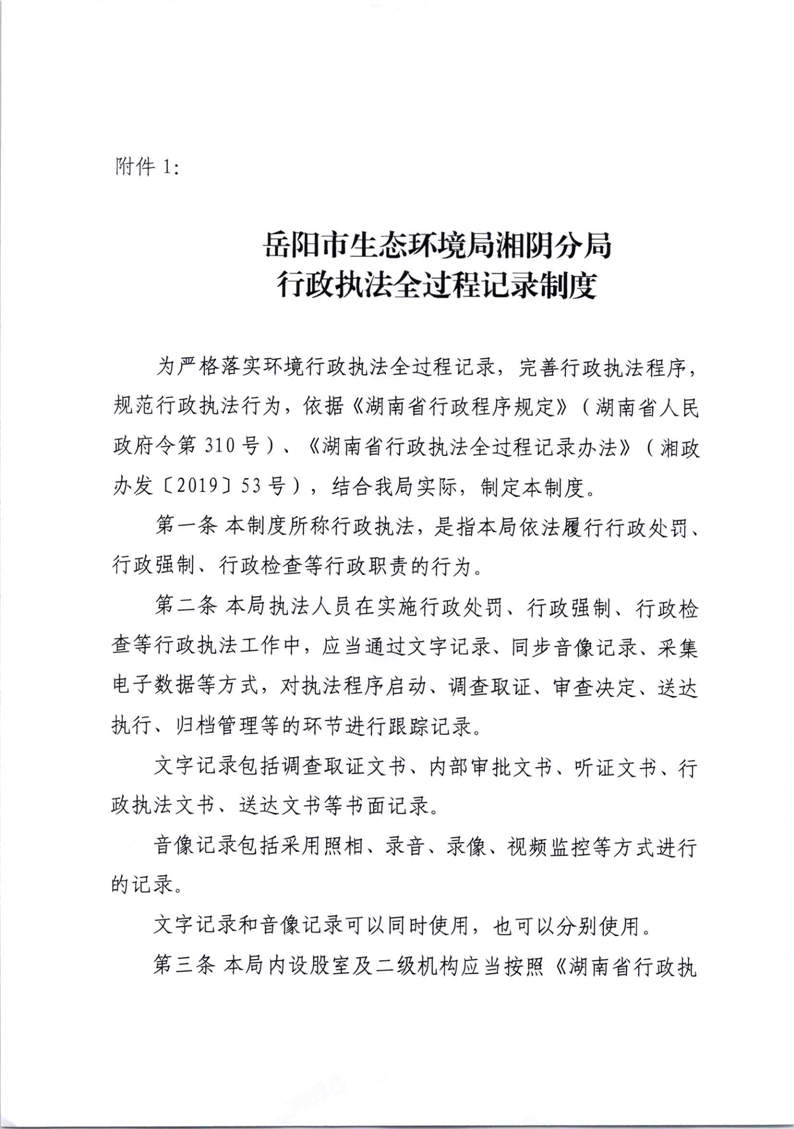 《岳阳市生态环境局湘阴分局行政执法公示制度》《岳阳市生态环境局湘阴分局行政执法全过程记录制度》