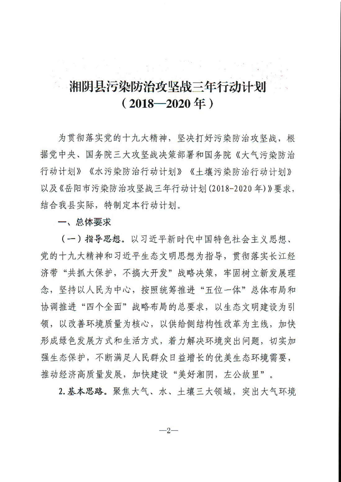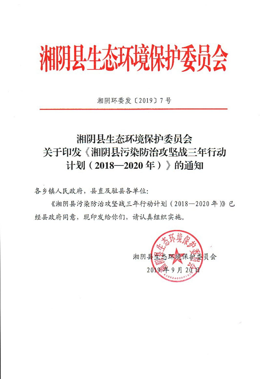 关于印发《湘阴县污染防治攻坚战三年行动计划(2018-2020年)》的通知